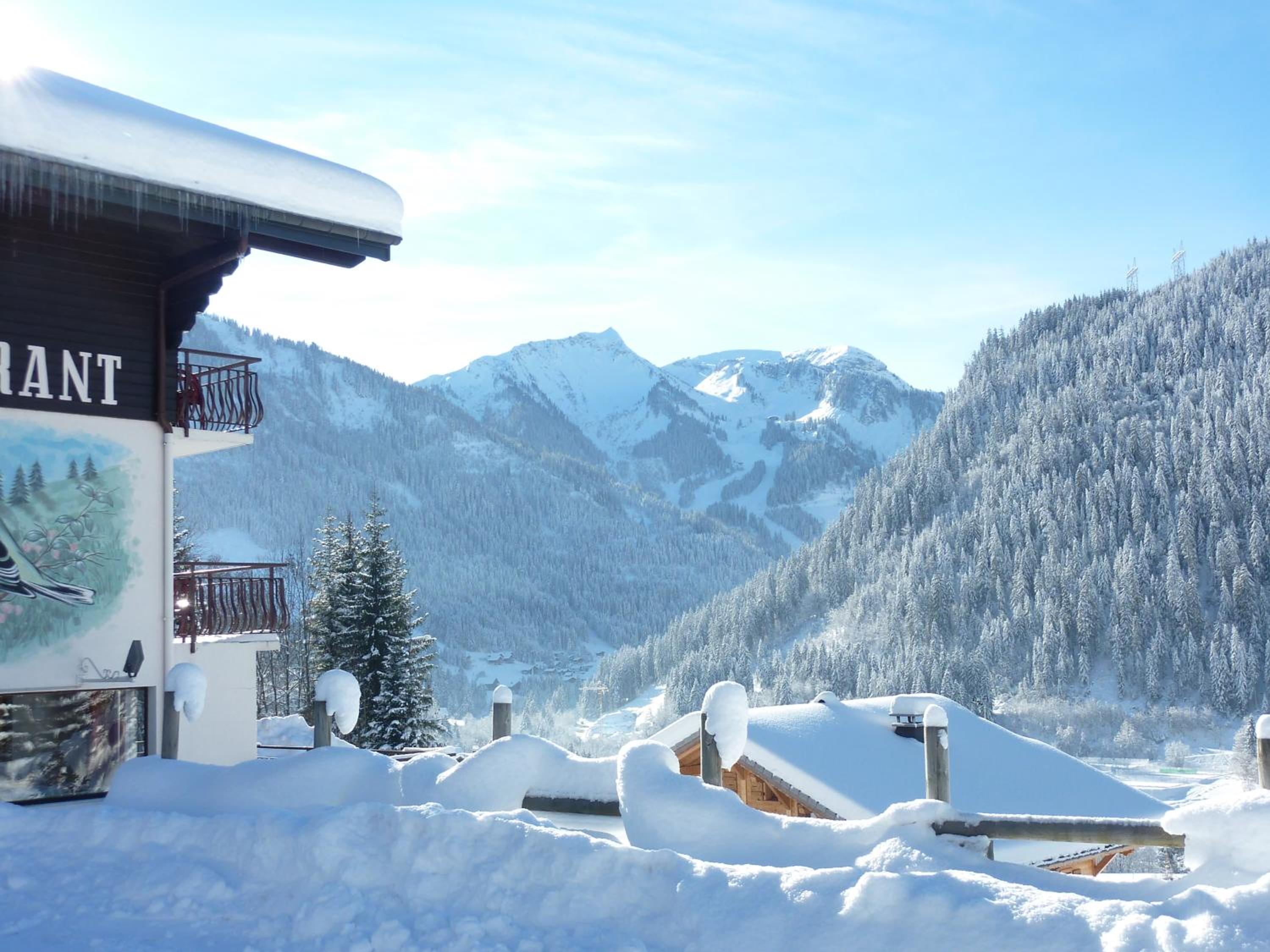 La gentillesse du personnel, l'emplacement à 5 minutes à pied du centre de Châtel. Lit confortable.