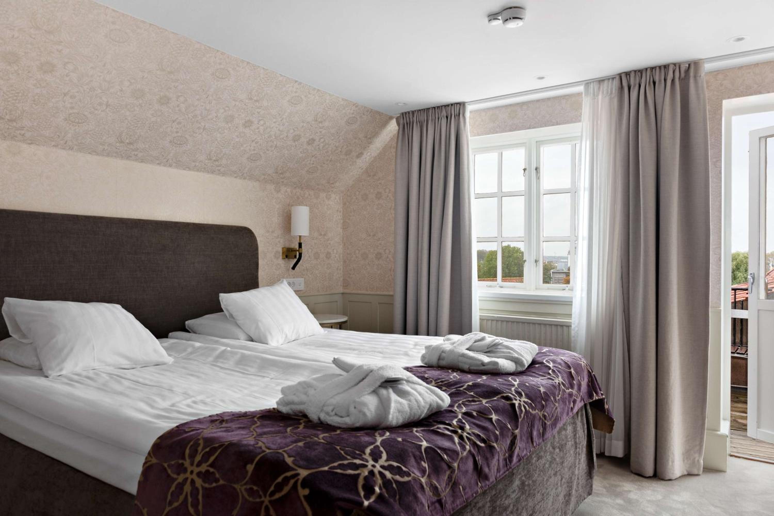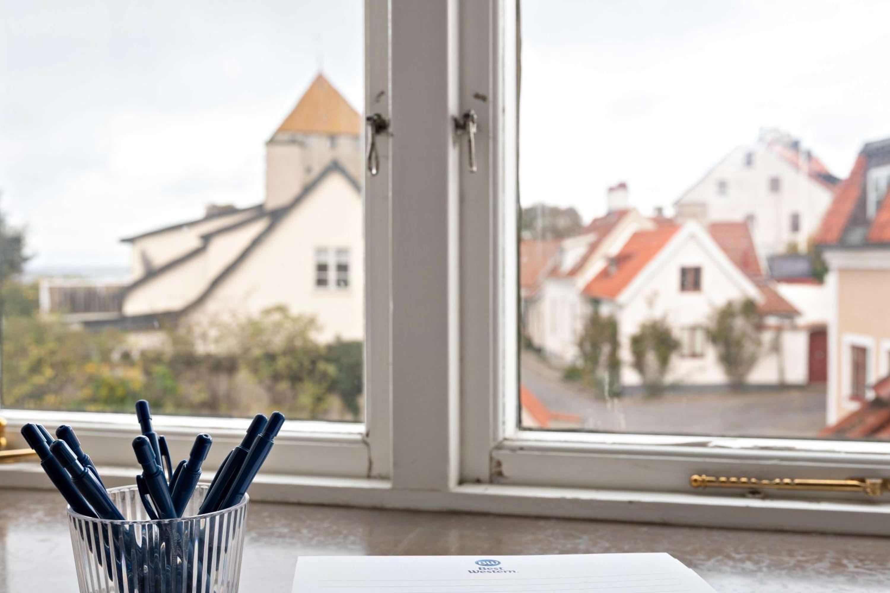 Located just 3 minutes' drive from the ferry terminal, our hotel is nestled among medieval houses and alleys within the historic walls of Visby. Book now to experience the charm of Gotland Island.