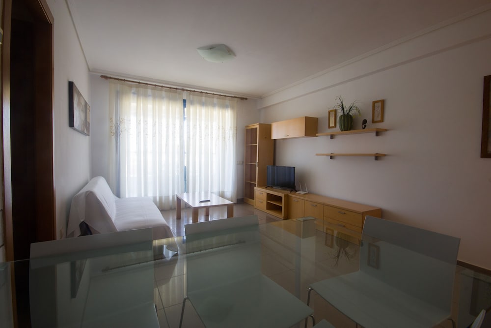 Brilliant location next to the beach. Apartment not flashy but perfectly clean and comfortable for a holiday base and kitchen well equipped. Good clear instructions given for after hours check in but did need an extra bit of help to locate the apartment. Security man was very helpful and we got by with his English attempts and my Spanish….towels were provided which I wasn’t expecting but my towel, whilst clean, was full of holes.