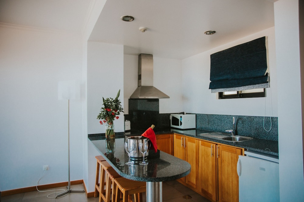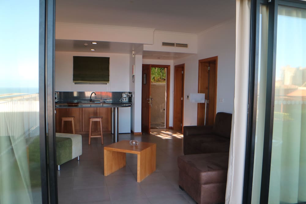 We had a large comfortable apartment in the old building with well equiped kitchen, small balcony with beautiful view overlooking immaculate gardens and pool, and the rugged coast. All the staff were very friendly and super helpful. Got a tip to swim in the natural pool in Seixal which was terrific (thanks Oscar) Dinner at sunset in the restaurant was a treat, everyone went out of their way to please, to the extent of getting home vegies and fish and apératifs not on the menu. The special visit to the restored Capelinha was an extra treat. Obrigada todos :-)