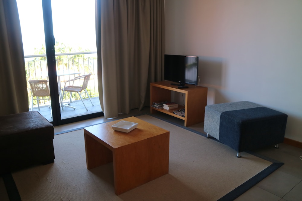 Worry about the shadow from the high mountains? Sunlight at the pool until 16:00 in mid January. My appartement (one of only 8) was spacious and in good condition. Cleaning everyday. Quiet air condition. Living room with kitchen/dinette, fully equipped, TV with international channels, bedroom with separate air, fully equipped bathroom. Balcony heading north with seating. Great view.