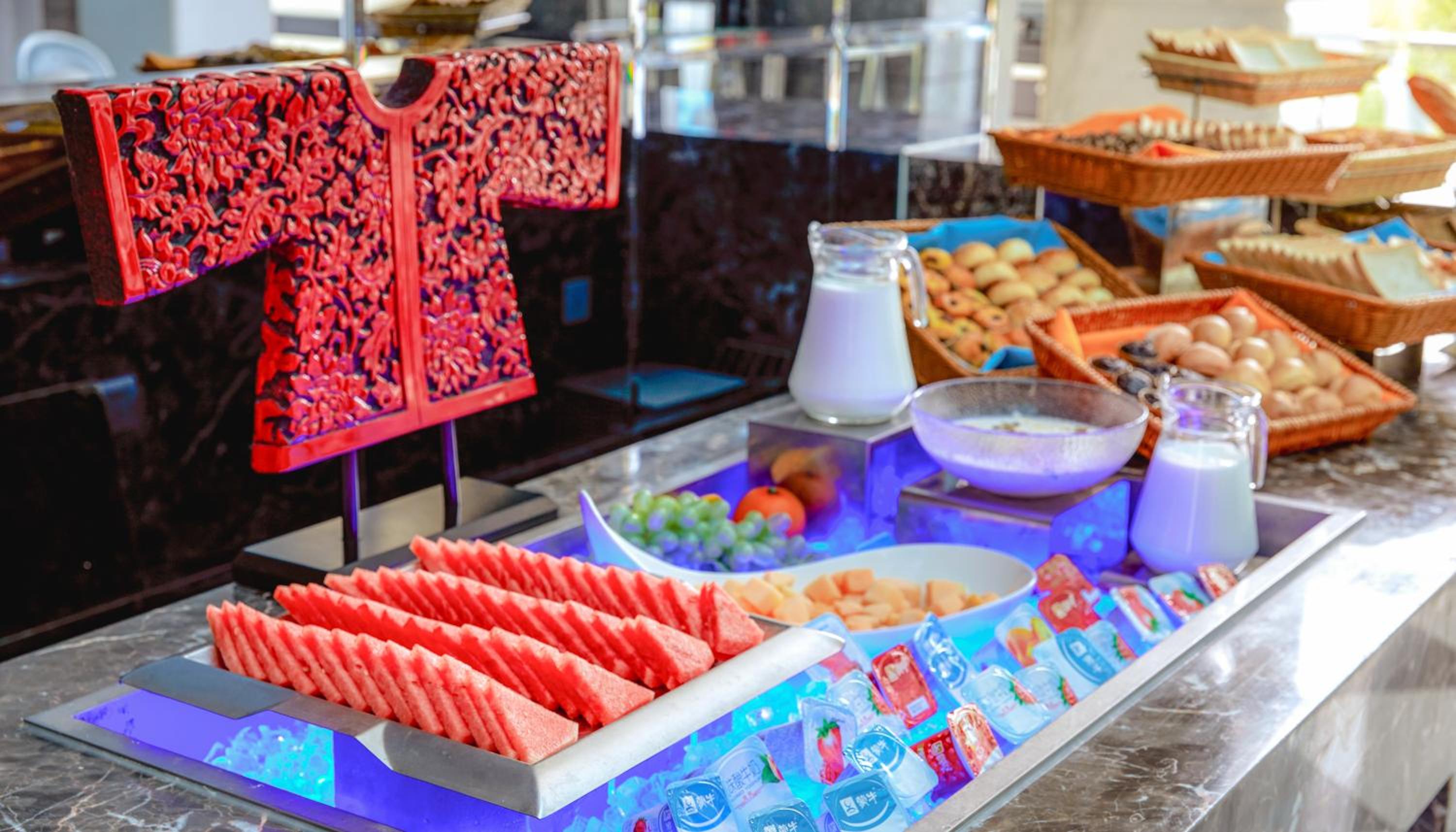 Guests can enjoy free internet access, a fitness centre, and a variety of dining choices including Mediterranean cuisine and Chinese delights.