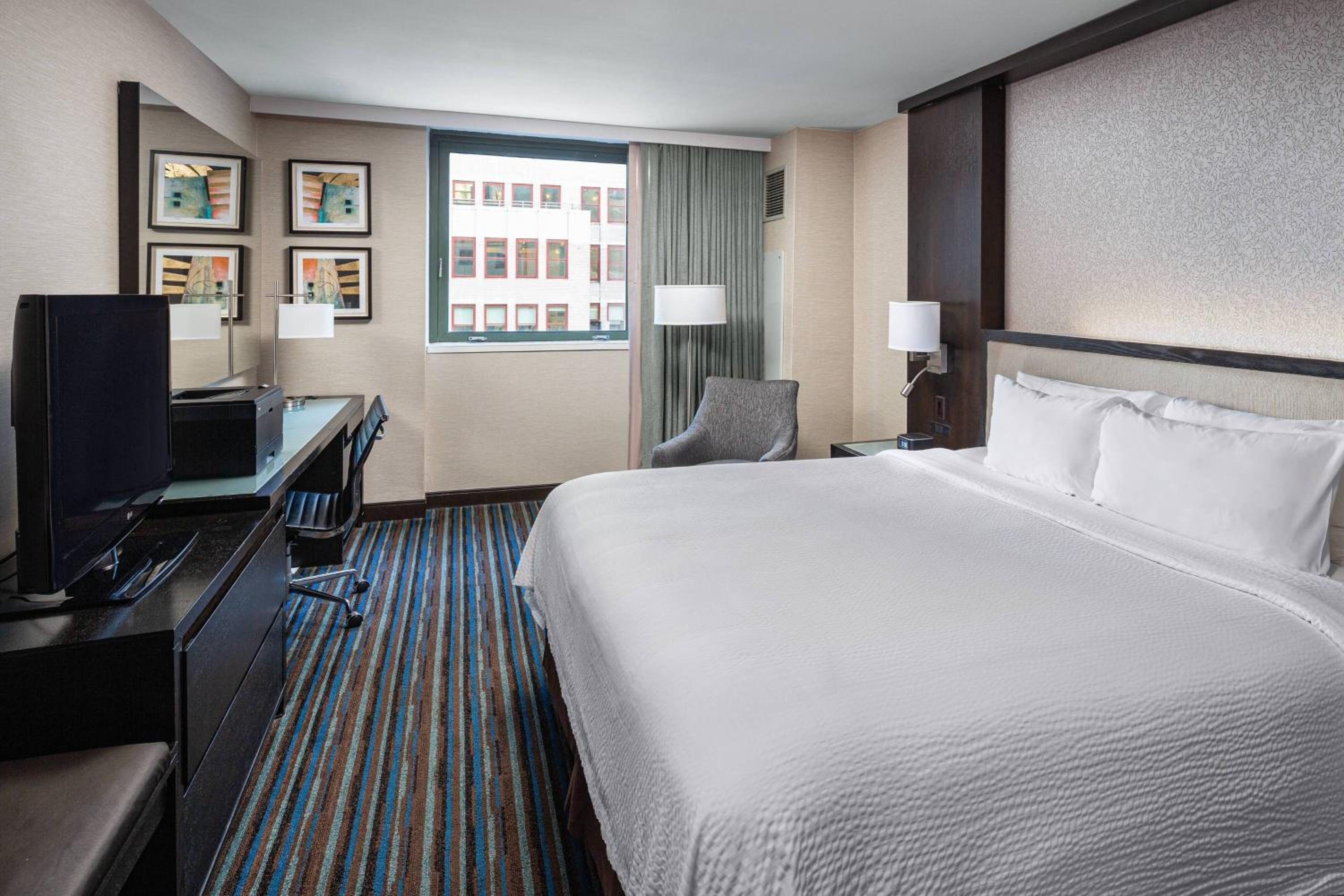 The Courtyard New York Manhattan/Times Square features modern rooms equipped with a flat-screen cable TV, iPod docking station, tea/coffee maker, safe, and work desk. Enjoy a comfortable stay with all the necessary amenities at your fingertips.