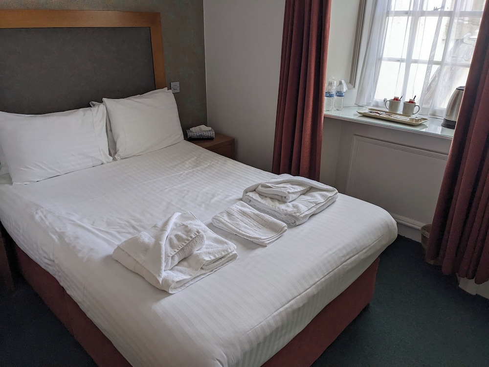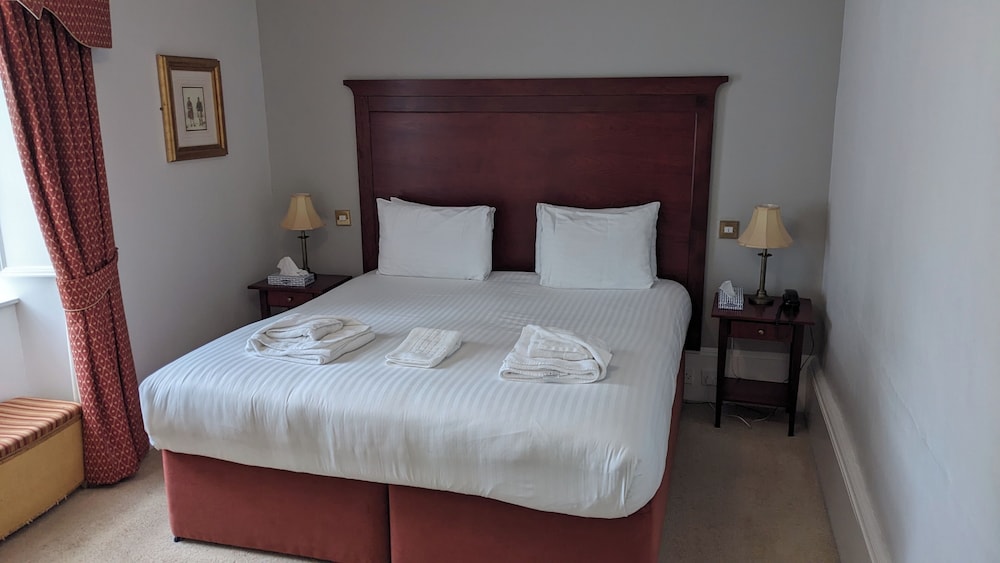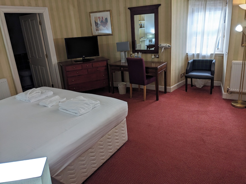 The staff were very friendly and helpful. Location was great for access all across East Lothian for e.g. golf and sightseeing, and for walking into town. Breakfasts were good, dinner was OK. Bar was Ok but could do with more comfortable furniture. My bedroom (#18) was absolutely tiny and could barely fit the double bed in it, but there were much larger rooms for the same price. Bedroom view was of a section of roofing. So overall the room was not good. The hotel was a little run down and could do with some renovation, but was clean, friendly and had good breakfasts. I'd stay there again if I could be assured of a normal sized hotel room, but would not stay if the room were to be the size of room #18.