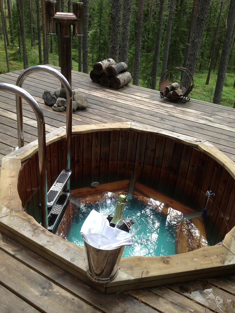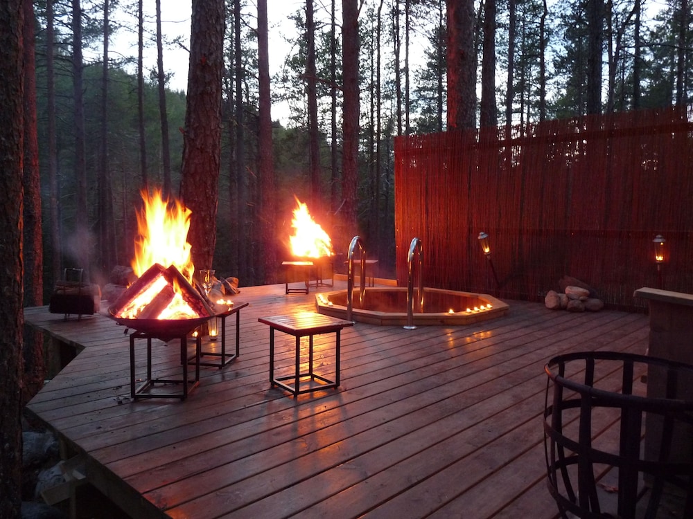 Flott og annerledes sted som ligger fint til i skogen. Vi bodde på det norske rommet som er veldig koselig og lunt. Men det er fryktelig lytt. Rommet ligger over kjøkkenet og restauranten. Ta med ørepropper. Ellers manglet det litt på noen små detaljer. Ikke leselamper ved senga f. eks. Men det ble en fin kveld med god mat og deilig badestamp i skogen. Anbefales.