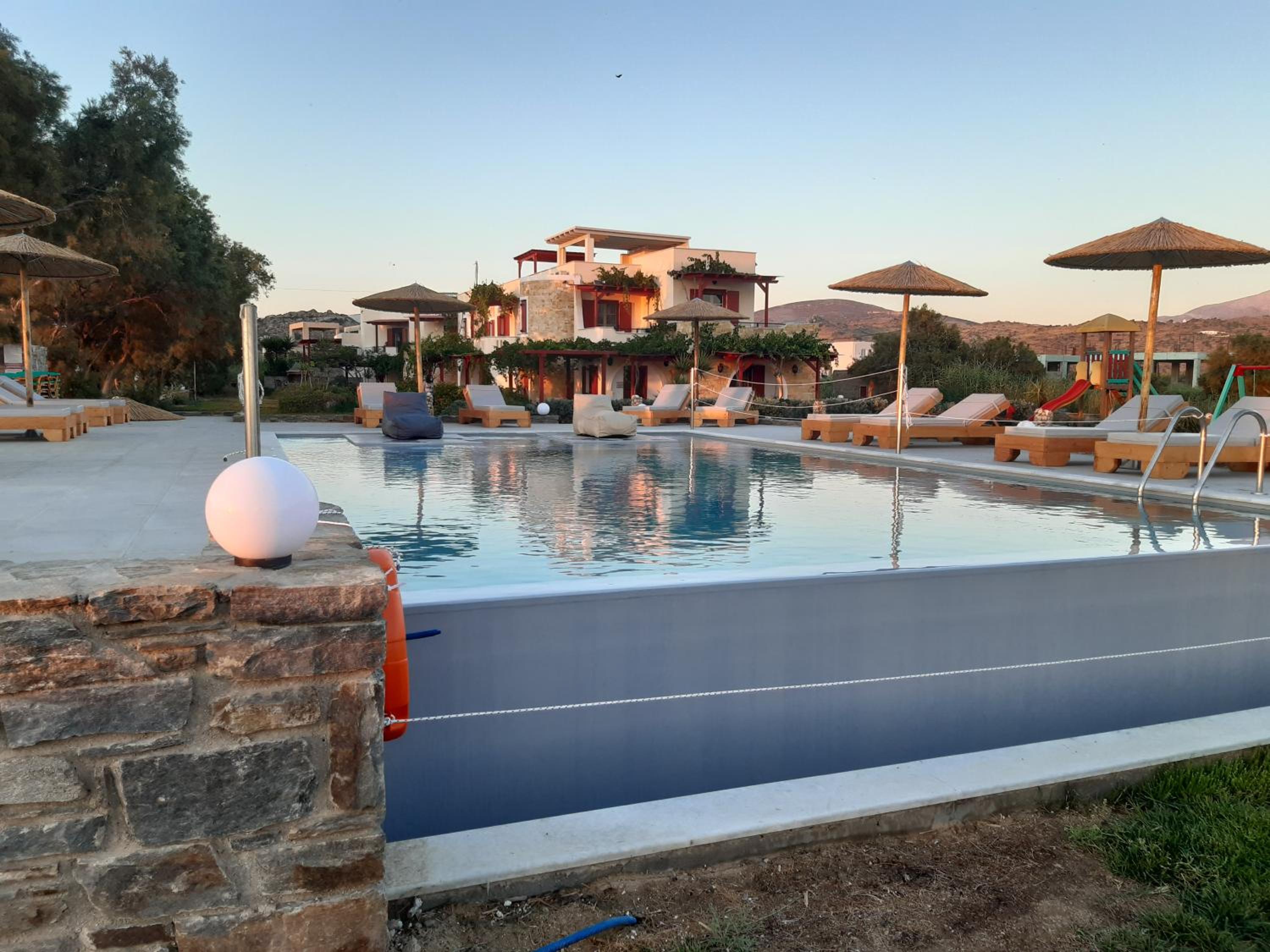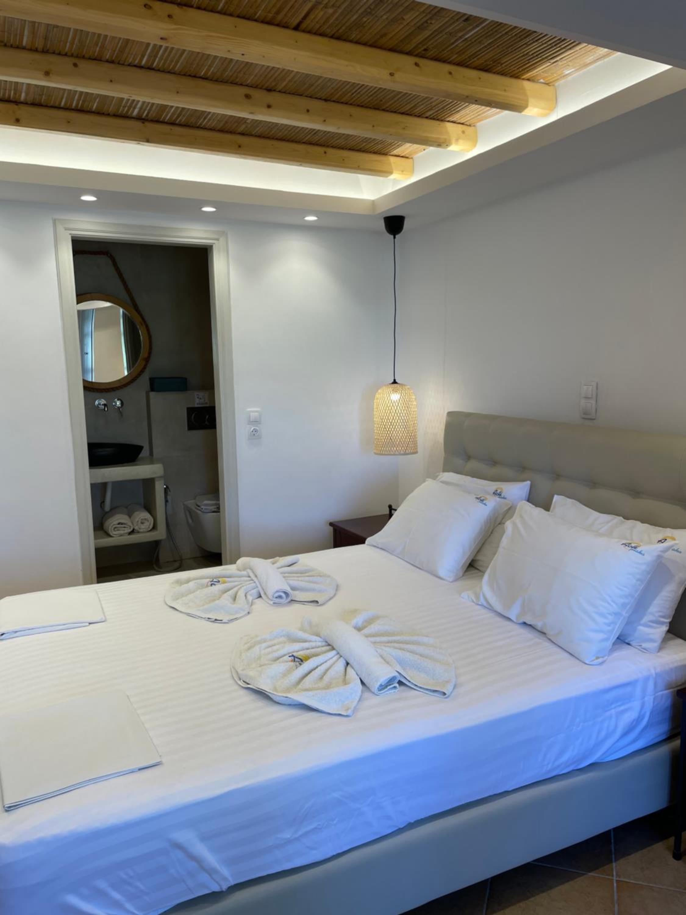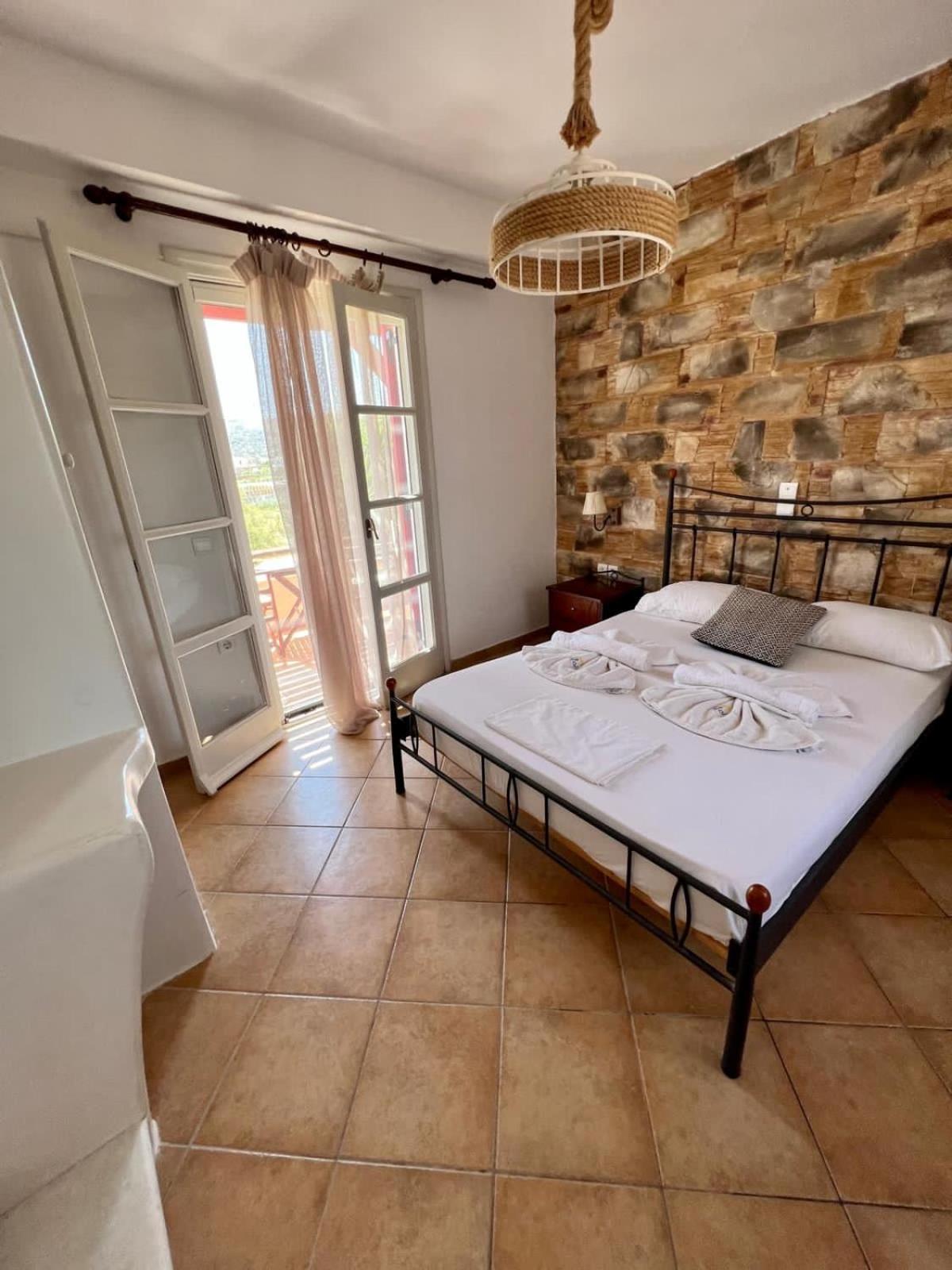 Un bel endroit en face de la grande plage de Plaka au calme, au bout du chemin qui longe la plage. Un coucher de soleil magnifique dont nous avons profité depuis notre chambre ! Et un petit déjeuner de qualité, très copieux préparé par Anastasia . Une mention particulière pour la qualité de l accueil d’Anastasia et son sens de service ! Nous avons particulièrement apprécié cette semaine passée dans cet établissement.