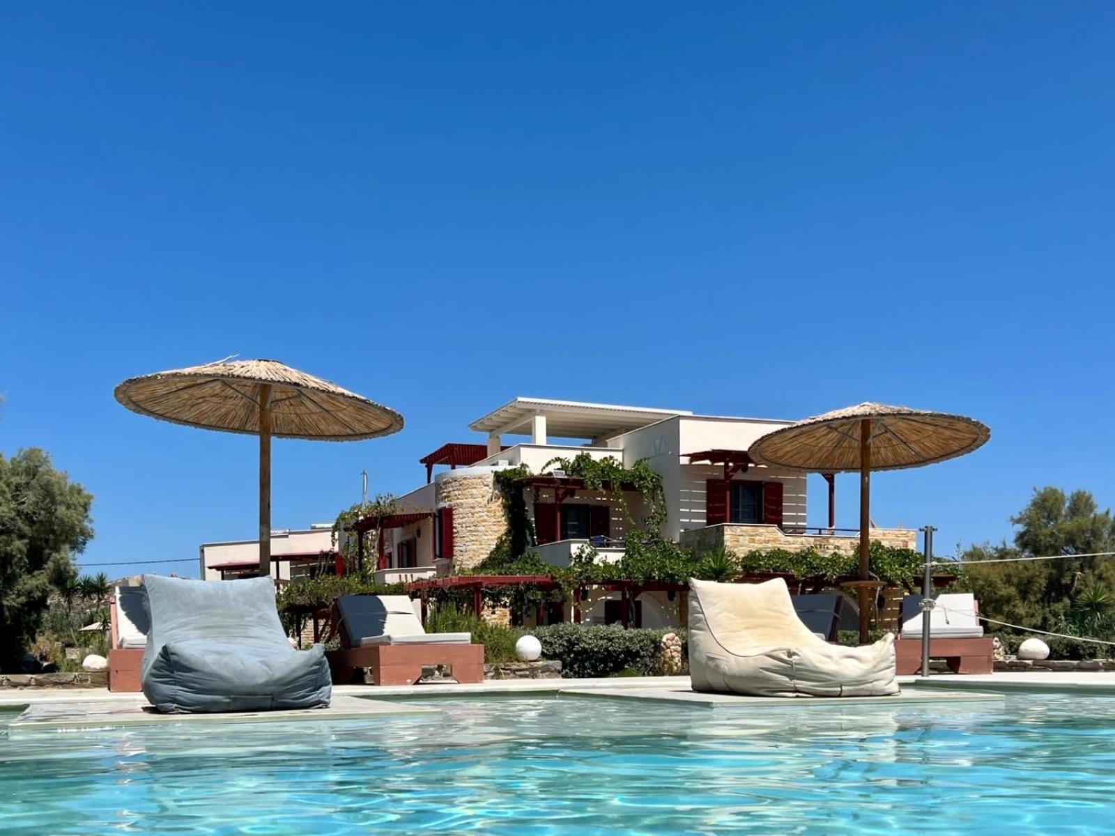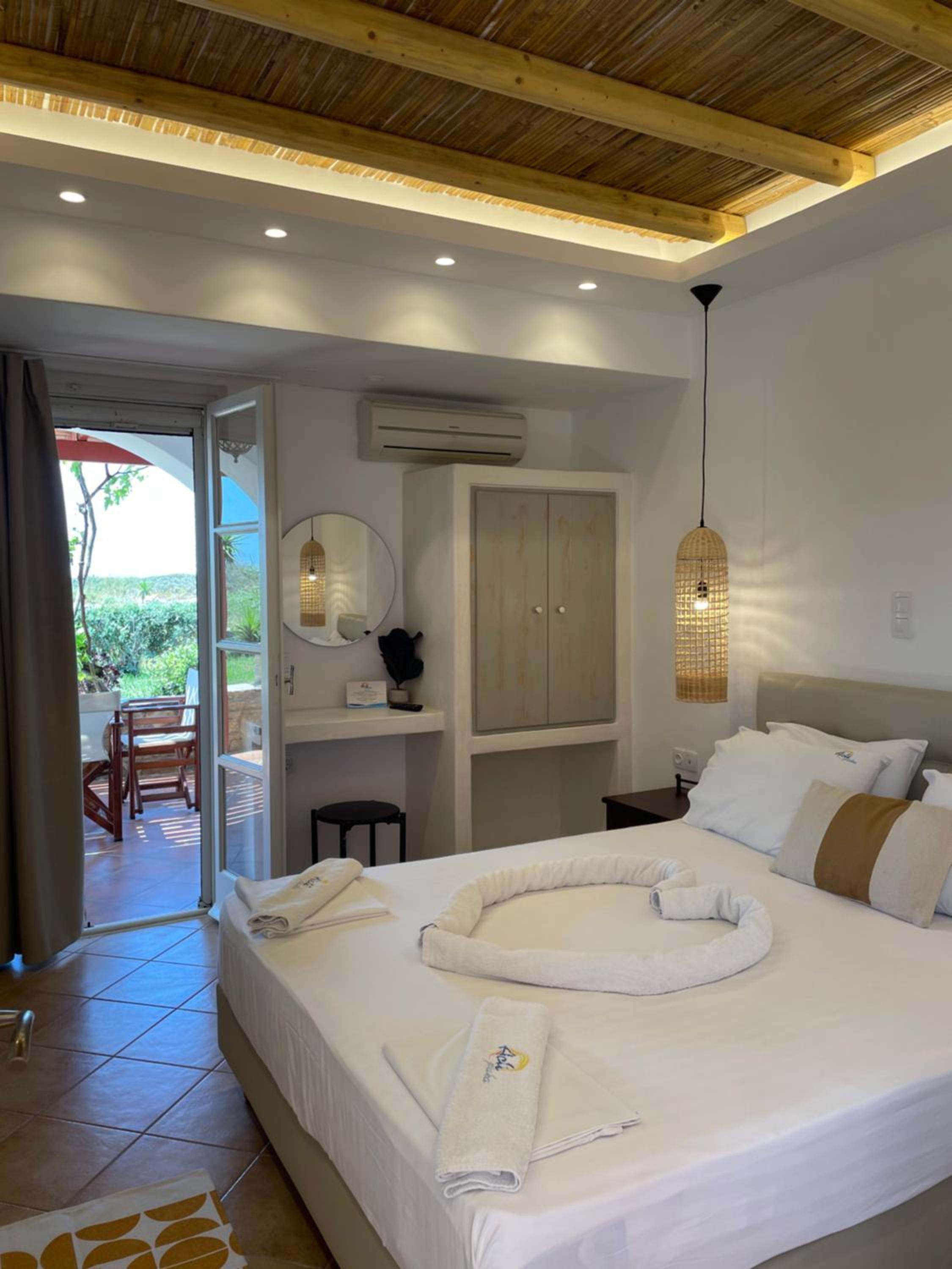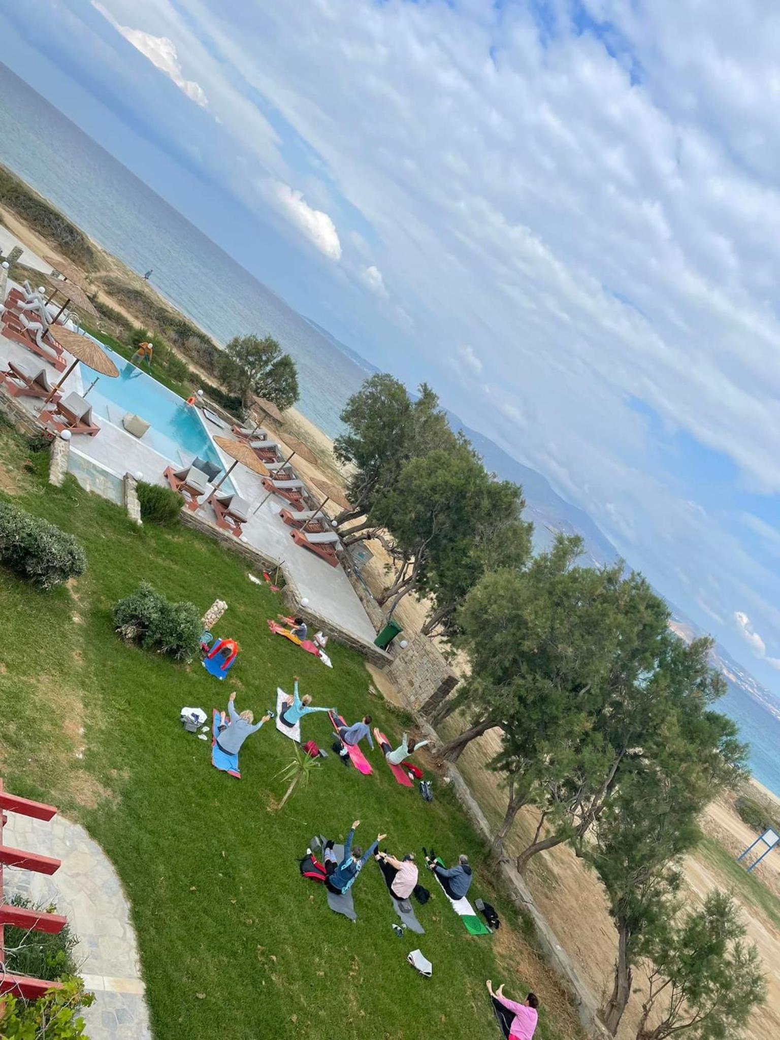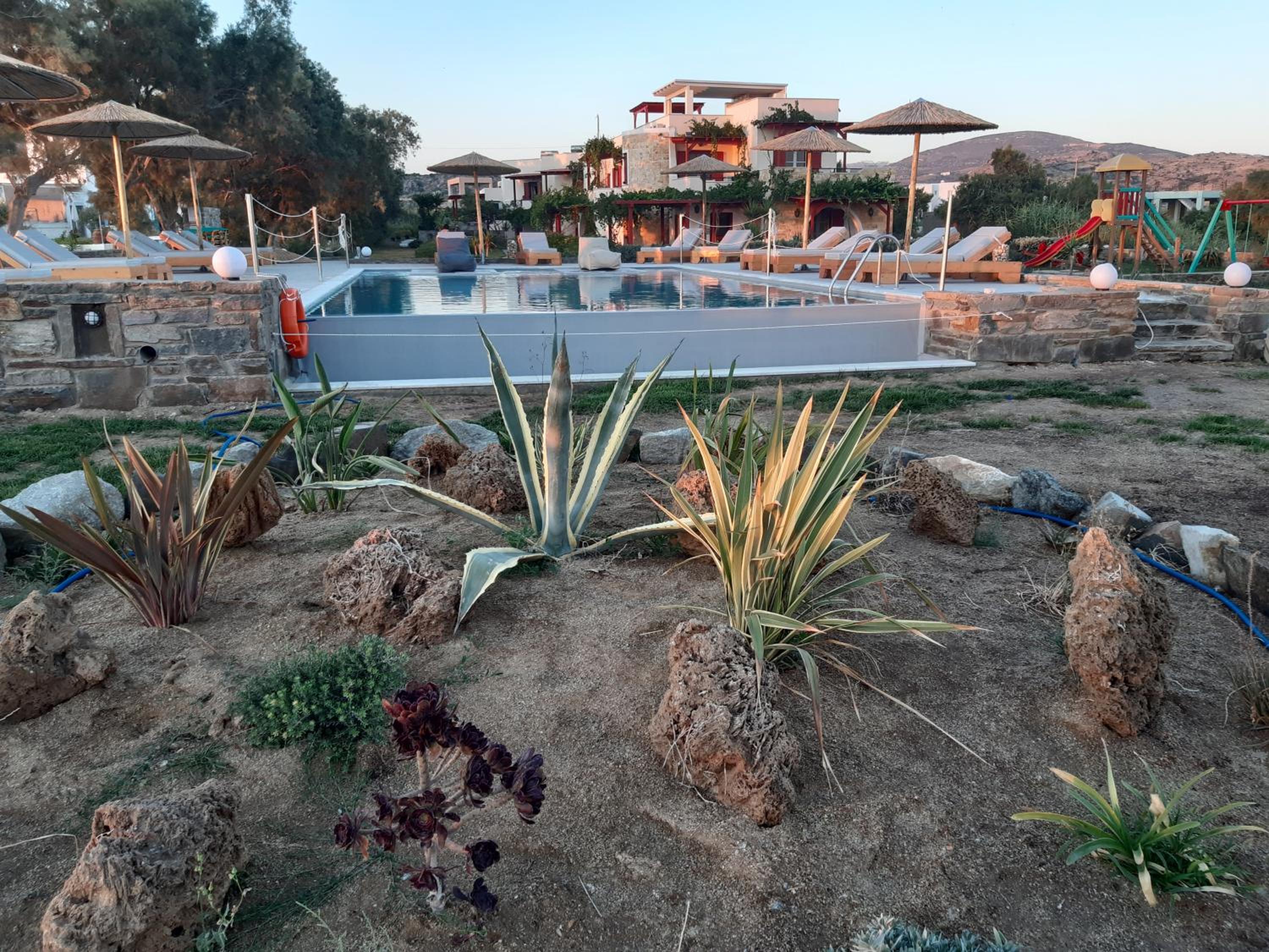 Un bel endroit en face de la grande plage de Plaka au calme, au bout du chemin qui longe la plage. Un coucher de soleil magnifique dont nous avons profité depuis notre chambre ! Et un petit déjeuner de qualité, très copieux préparé par Anastasia . Une mention particulière pour la qualité de l accueil d’Anastasia et son sens de service ! Nous avons particulièrement apprécié cette semaine passée dans cet établissement.
