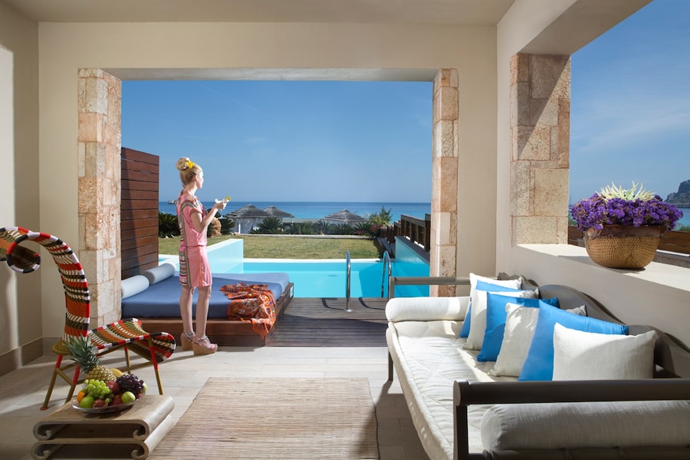 True 5 star Hotel on the coast near to Lindos. Excellent staff who are very hospitable. Room with private pool is very nice. Broad choice for breakfast. Good selection of drinks and food to enjoy on the private beach. Never short on sun loungers and parasols. Would definitely recommend for people who want to relax in a top notch hotel and be close to Lindos ( 4-5 minutes taxi, 25 minute walk). Nothing negative to say. You won’t be disappointed. Enjoy.