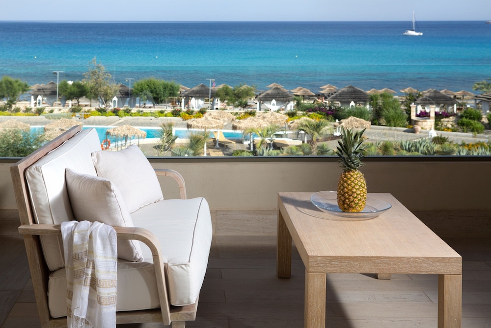 We had a fantastic stay here. The staff are very friendly and knowledgable, in particular Anna who works at the beach bar was brilliant! Very clean, plenty of space at the pool and beach sunbeds, 5 min drive to Lindos and very easy to get a taxi ordered from the reception (costs 8-10 EUR one way). Only improvement would be for the gym, which is quite small and some equipment wasn’t working and you have to book a time slot each day in advance. Other than that, it was class!