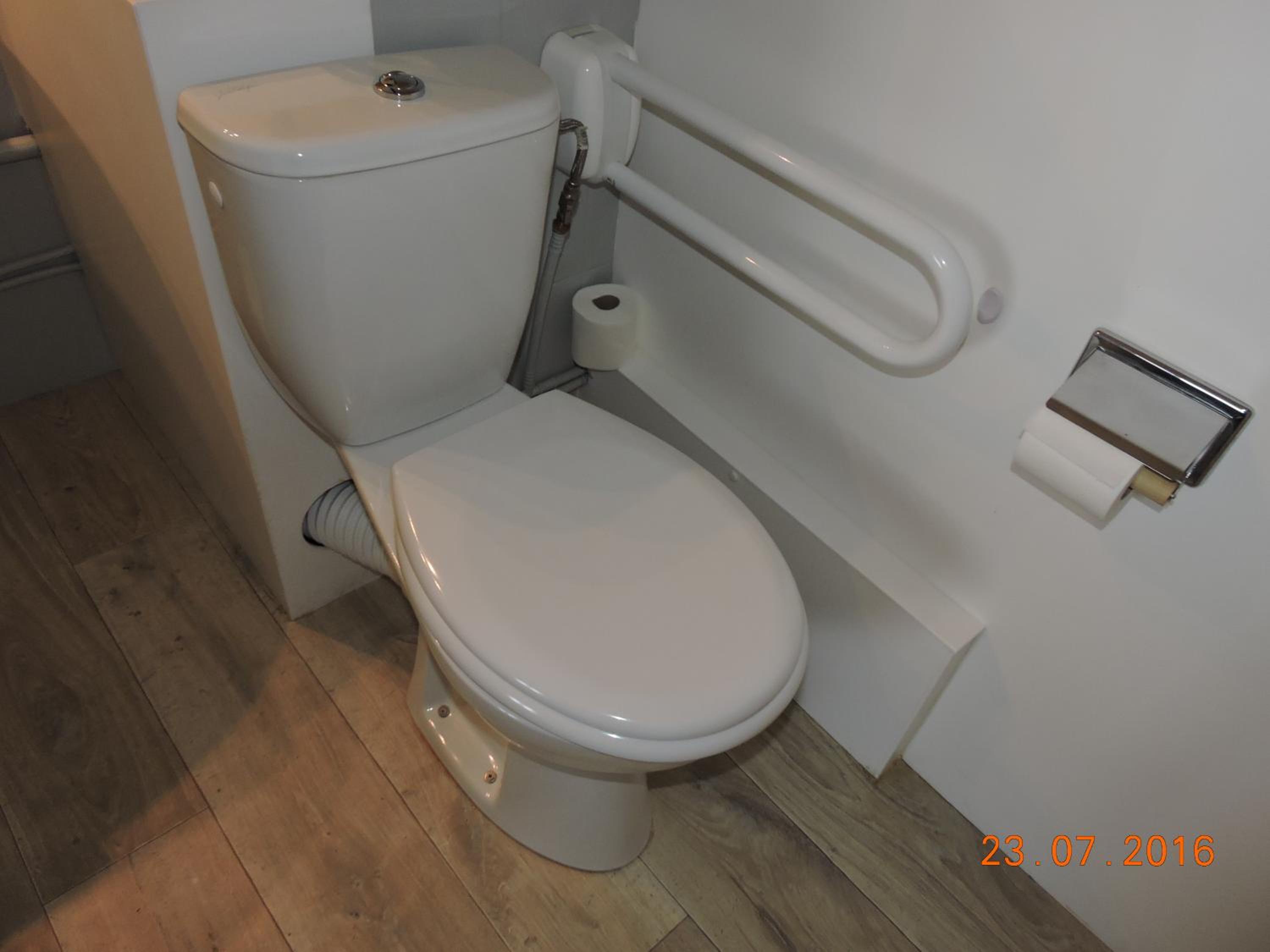 The old school room, the old carpet, the toilet in the middle of the bathroom. The broken curtain.