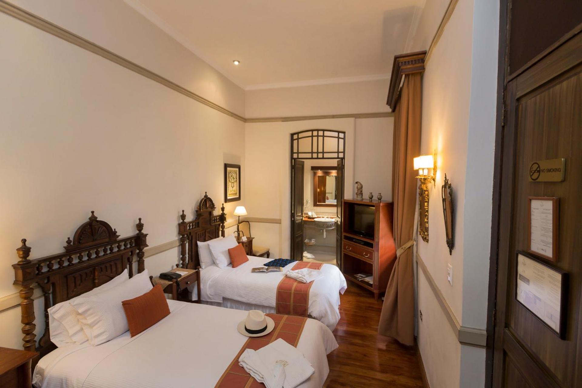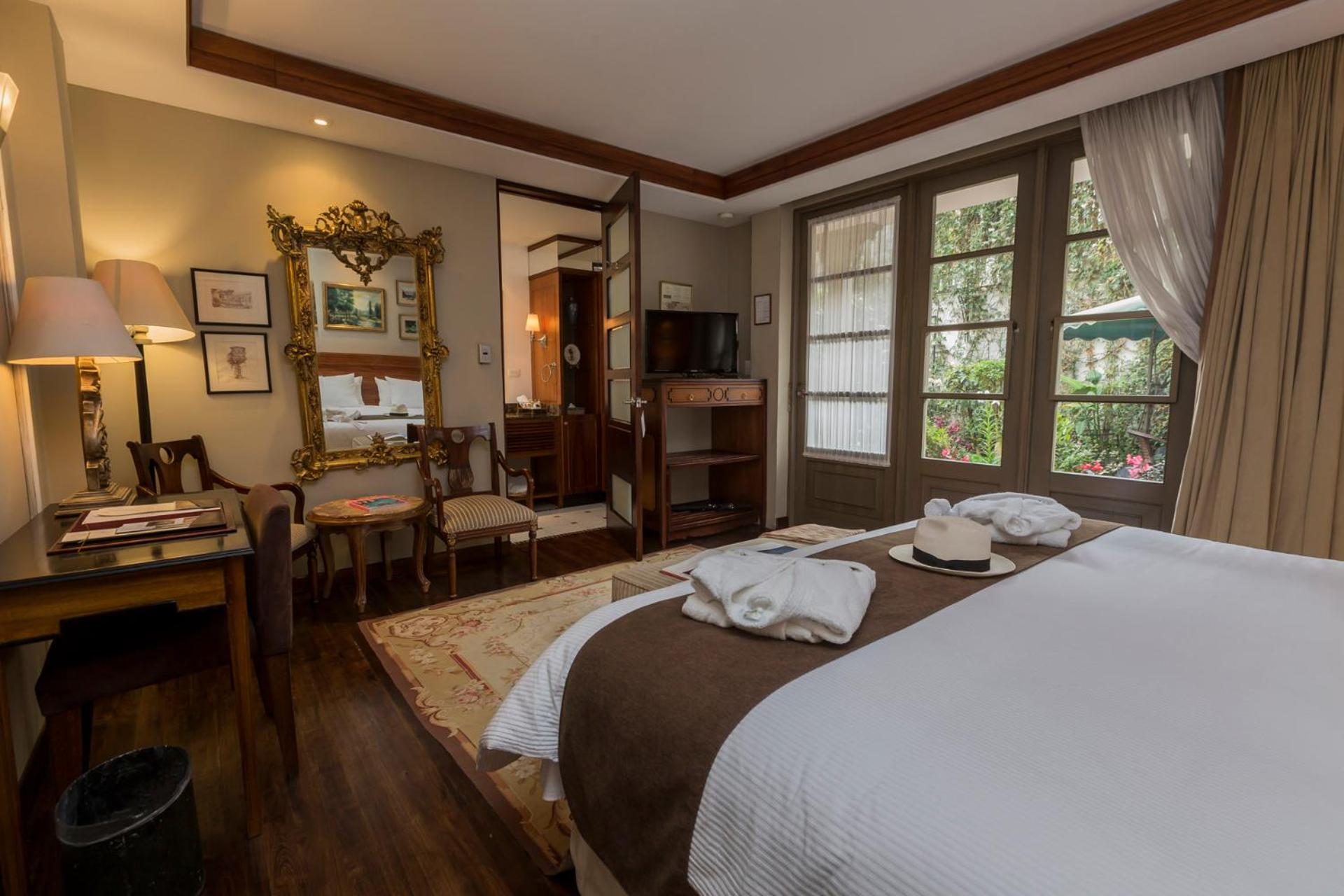 At Mansion Alcazar, immerse yourself in the charm of a colonial boutique hotel in Cuenca. Elegant Accommodations await with queen and king size beds, antique furnishings, and modern amenities like air conditioning and LCD TVs.
