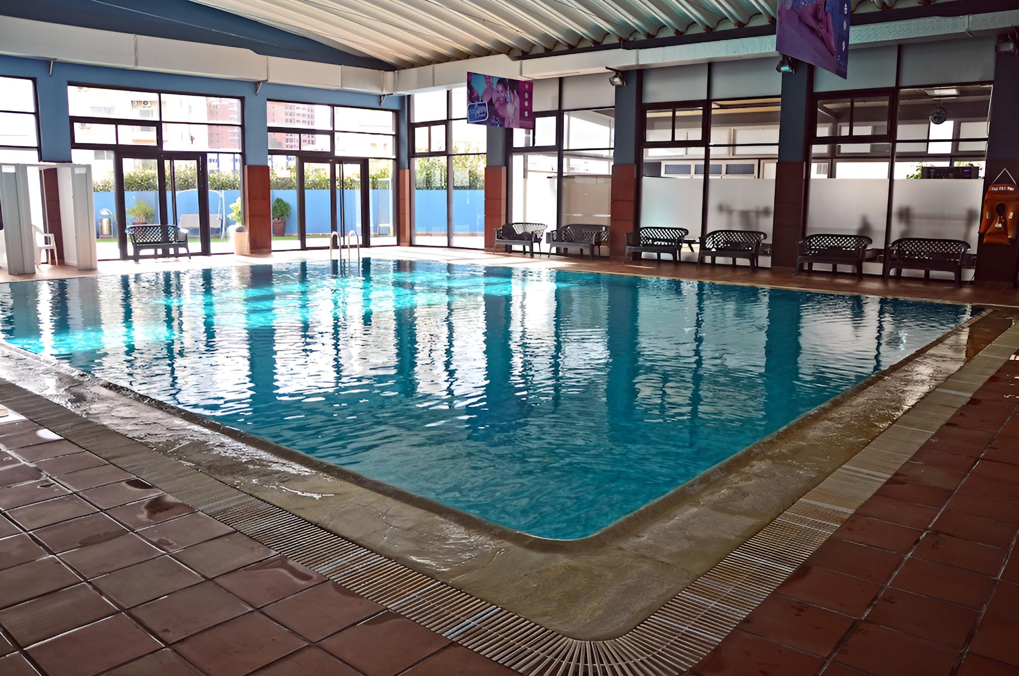 Luxurious Amenities - Indulge in the indoor pool, fitness center, and complimentary Wi-Fi throughout the hotel. Enjoy the convenience of room service and multiple dining options, including a continental breakfast and a bar/lounge for drinks.