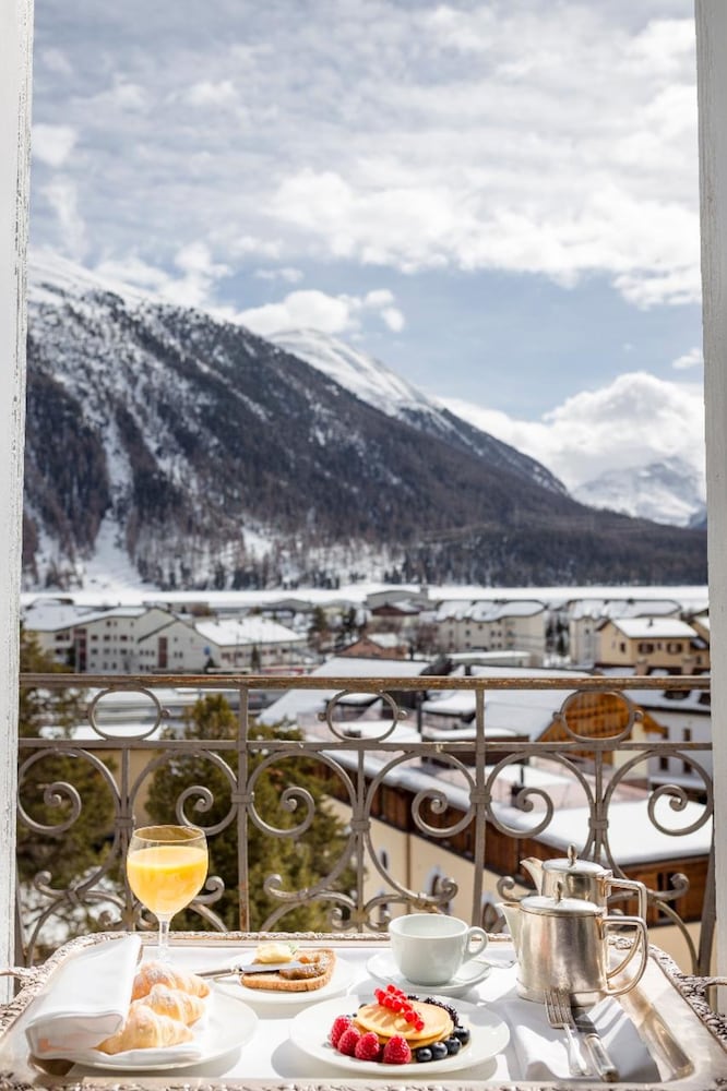 Very good hotel but not in St Moritz. Samedan is a 10 min drive from St Moritz station.