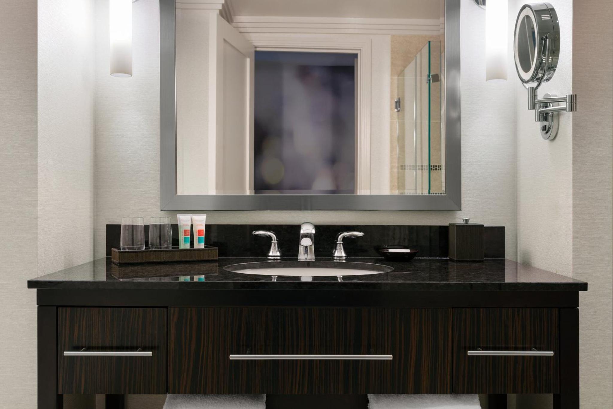 Convenience and Comfort: Benefit from a full-service business center, 24-hour front desk, steam room in the gym, and pampering services at Exhale Spa.