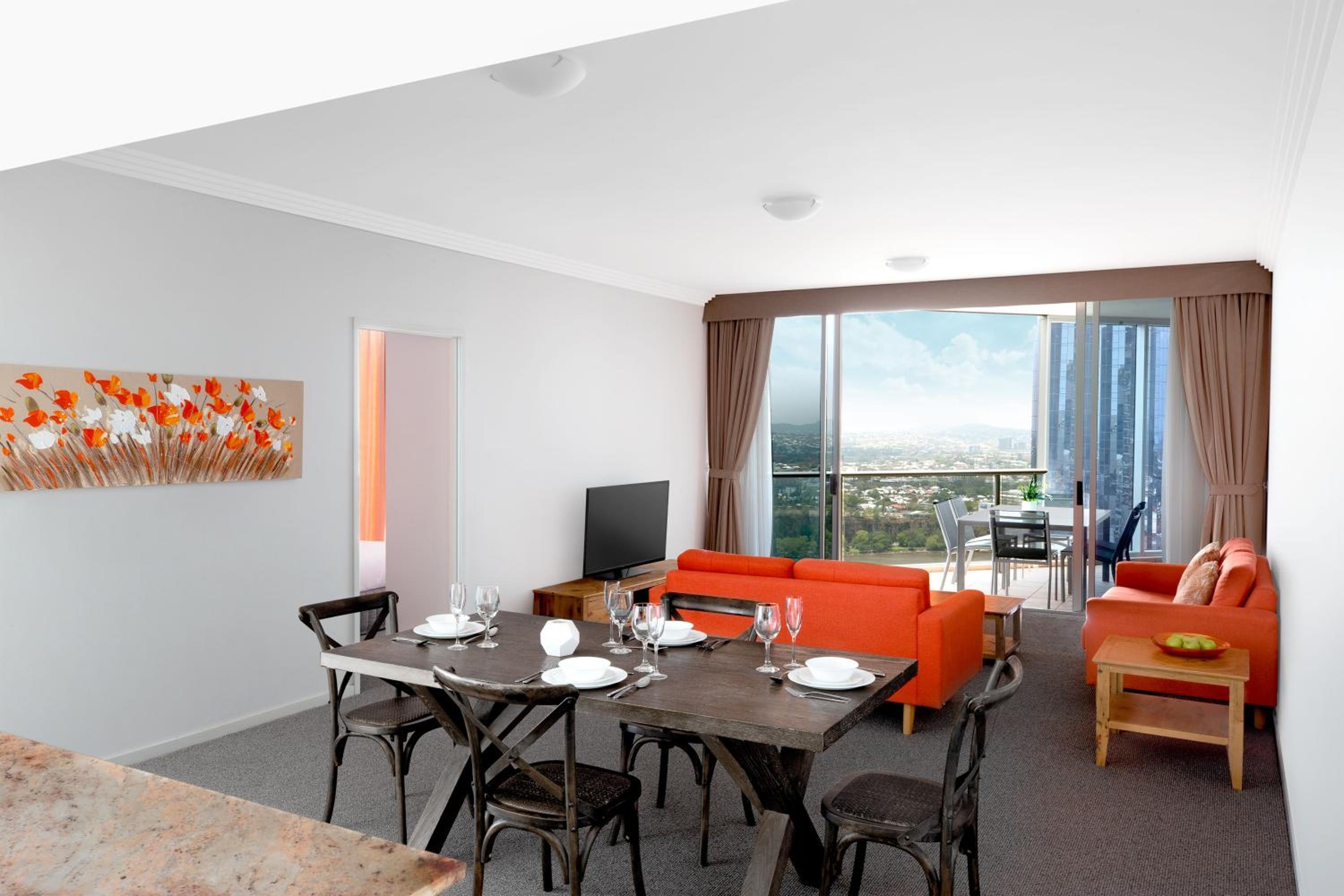 Nestled in Brisbane's bustling CBD, Mantra on Mary offers upscale self-contained apartments equipped with modern amenities like TVs and DVD players. Each apartment boasts a fully equipped kitchen, laundry facilities, and a cozy living space for utmost comfort.