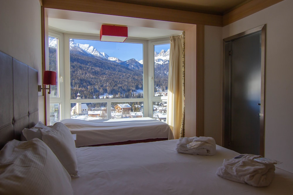 O hotel tem instalações modernas e confortáveis. Estava limpo e com uma vista para o vale muito bonita.Disponibiliza chinelos e roupão no quarto para que sejam usados no spa (sauna e banheira de hidromassagem). O café da manhâ é delicioso com várias opções e tem uma bela vista da montanha. Não tem ar condicionado, somente um ventilador de teto, obrigando-nos a deixar a janela aberta (duas opções de abertura: abre parcialmente em 30 graus ou totalmente). Fica a 30 minutos de carro do centro de Cortina D"ampezzo, já no caminho da estrada para Veneza.