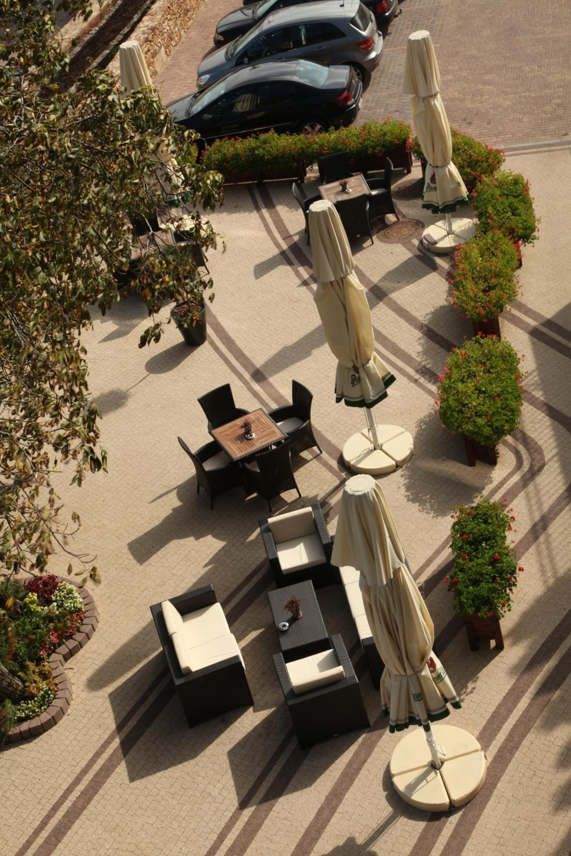 Okolí hotelu - hezky upravená terasa. V restauraci dobré jídlo, ale spíše vyšší ceny.