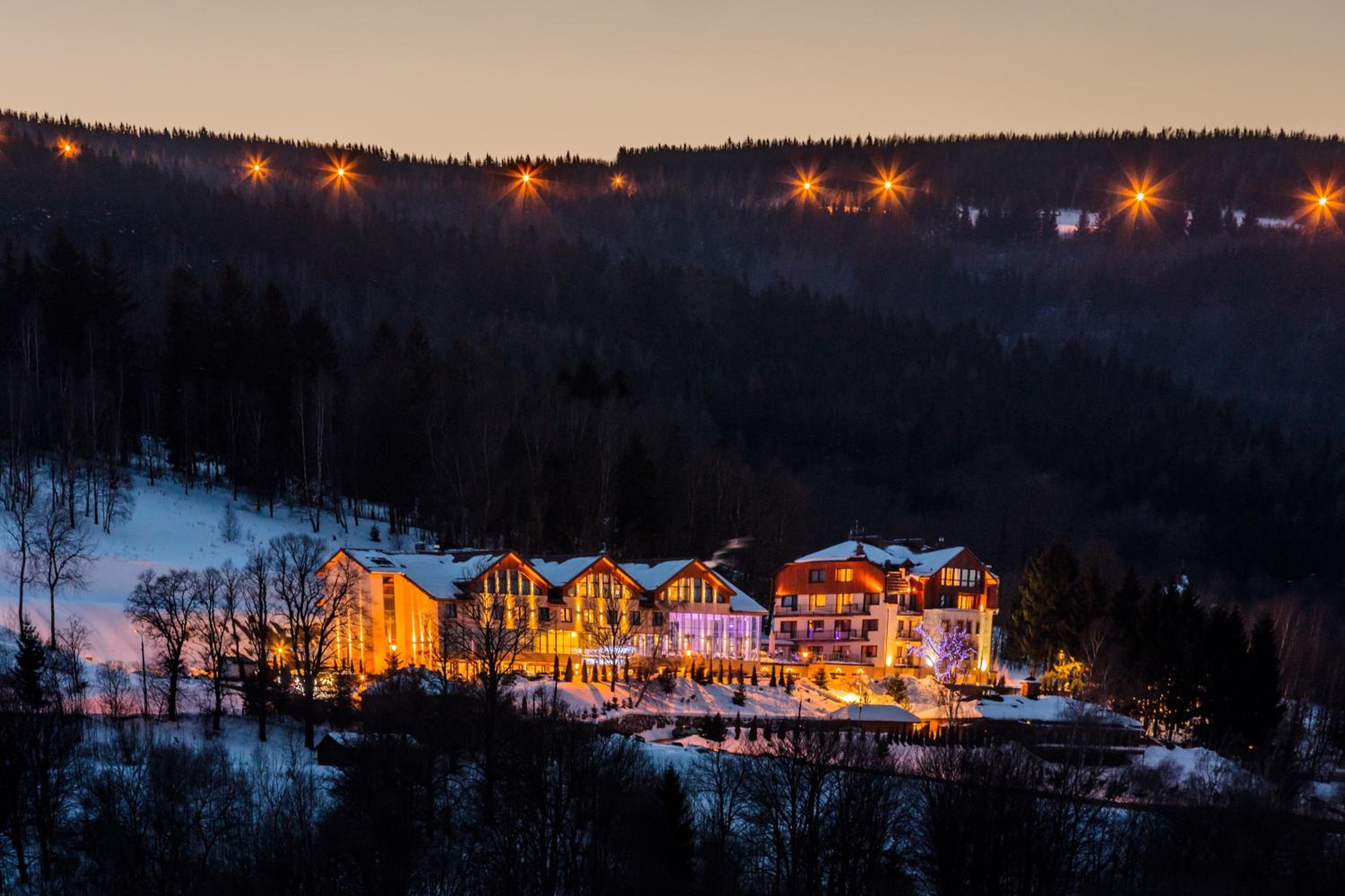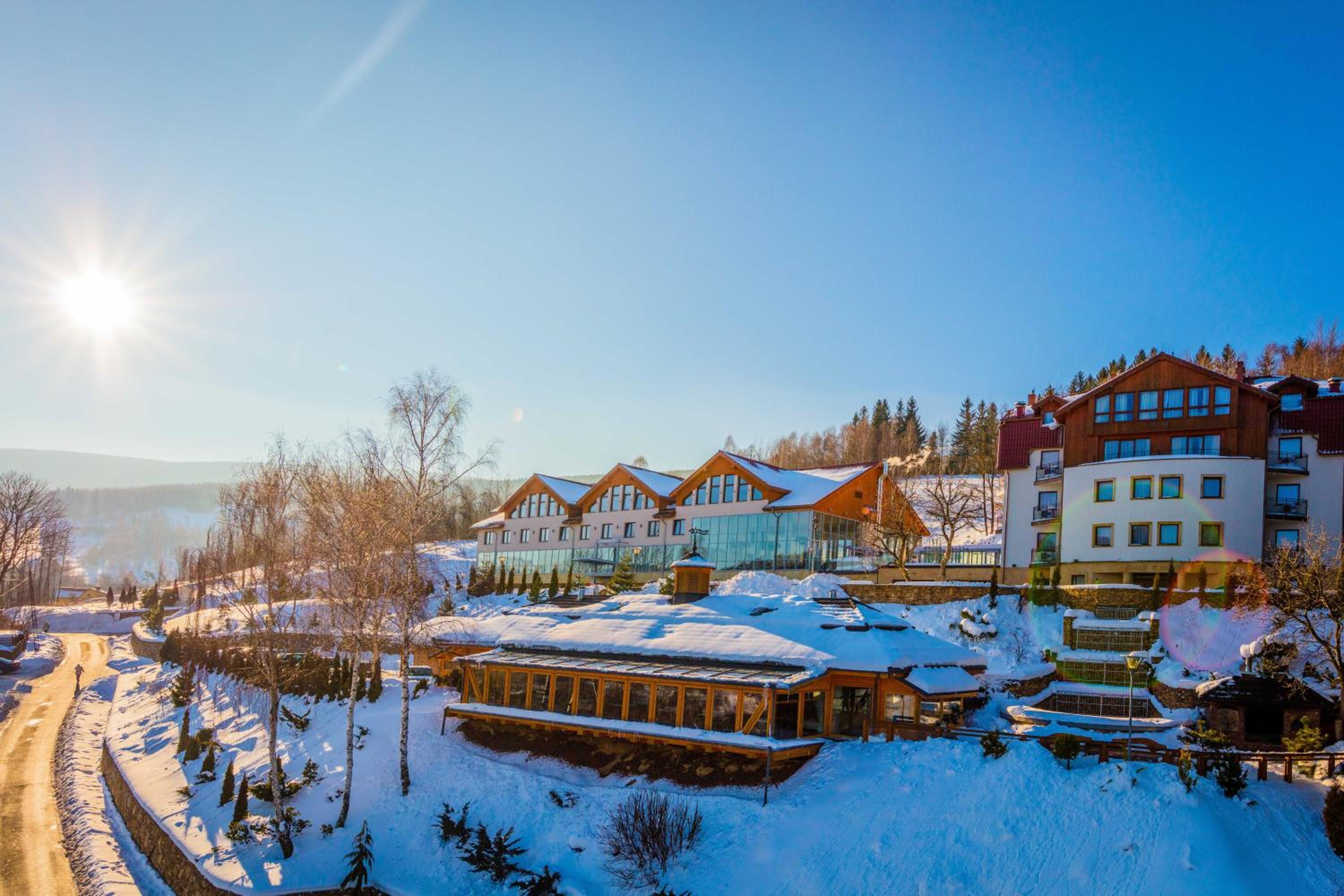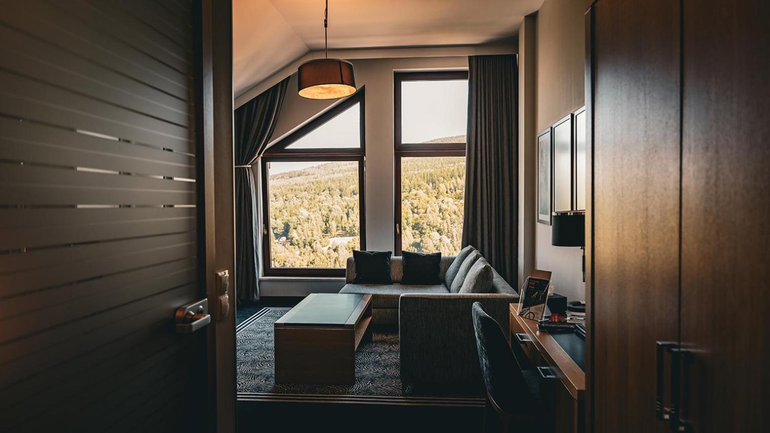 Hotel & Medi-Spa Biały Kamień offers a variety of rooms and suites, some with 4-star standards, all equipped with LCD TVs and modern bathrooms. Enjoy stunning mountain views from the comfort of your room, with the option of a balcony for a breath of fresh air.