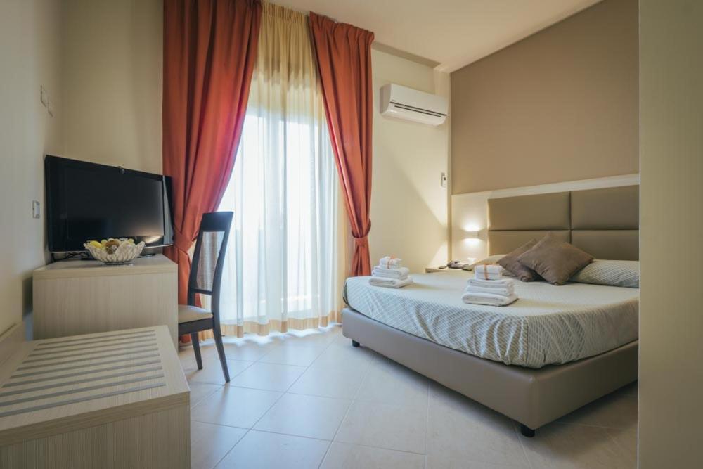L’hotel, posto in una situazione decentrata rispetto al centro del paese, è moderno e accogliente; stanze ampie e pulite, la nostra aveva anche una vista apprezzabile sul mare