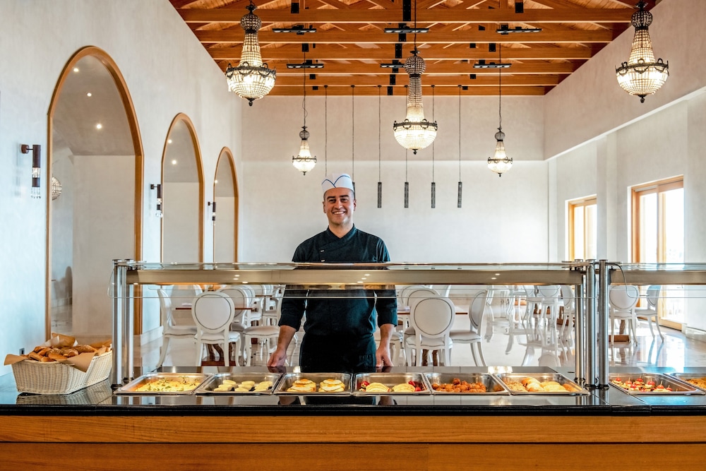 The Mitsis resort looks the part and has a few strong positives. The food selection is excellent, the restaurants are well-run, and the service from the restaurant staff is genuinely great.