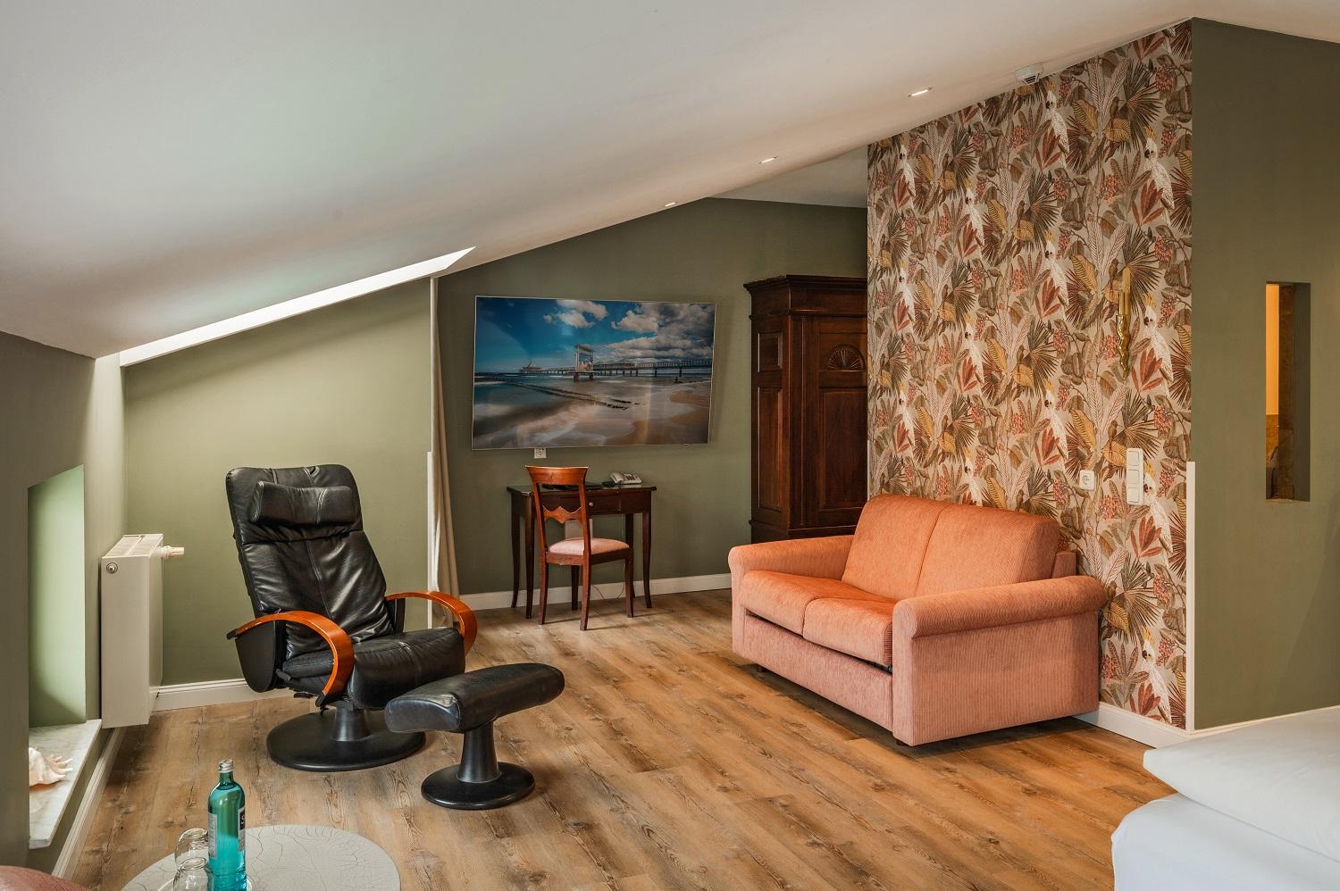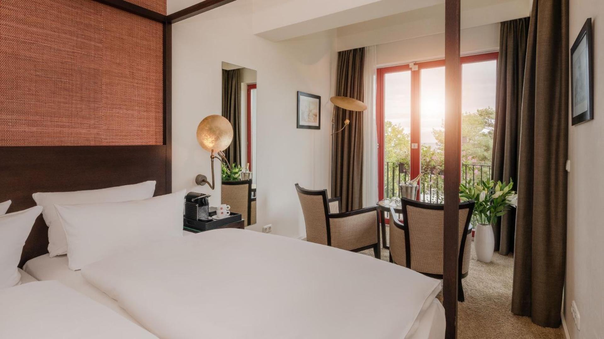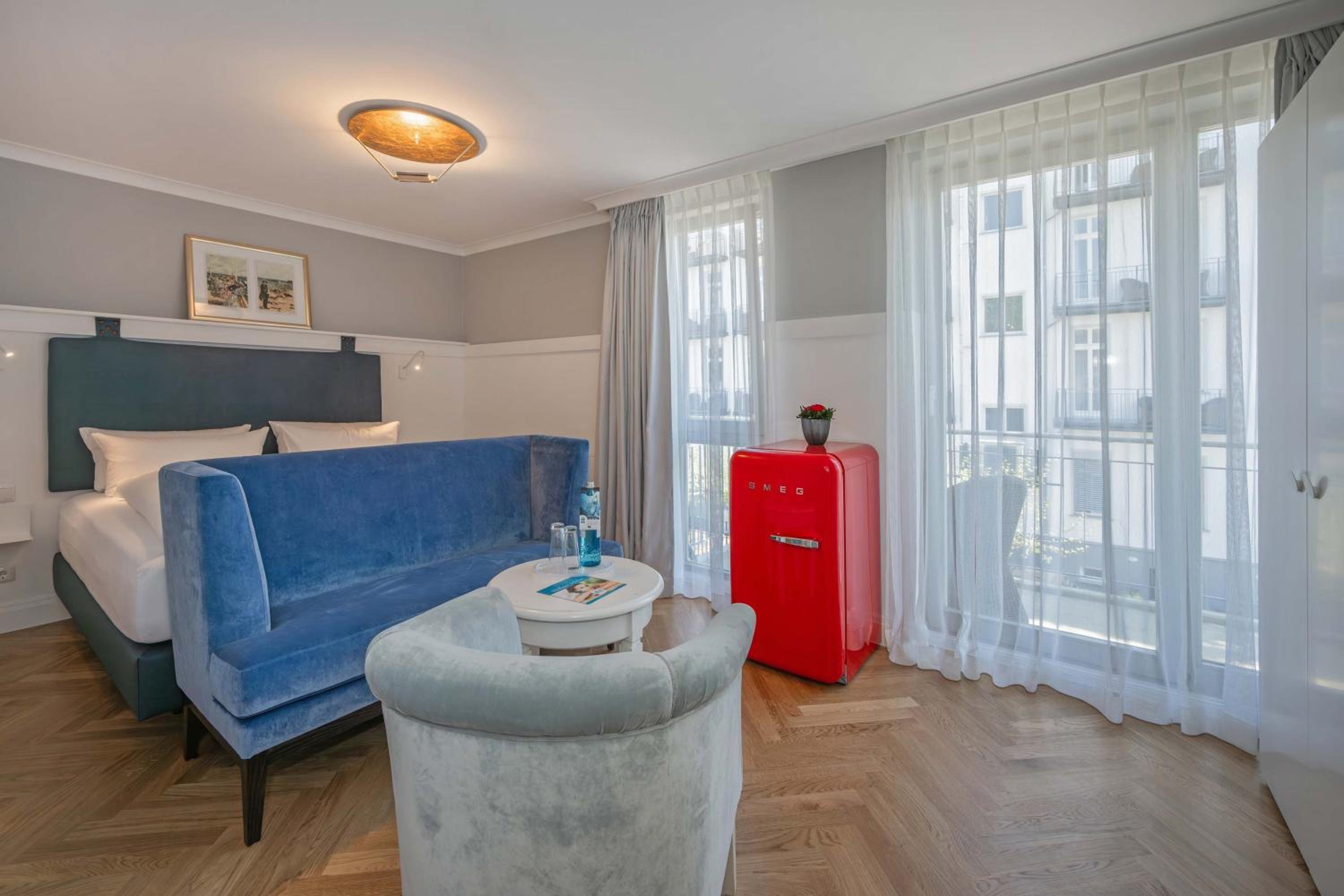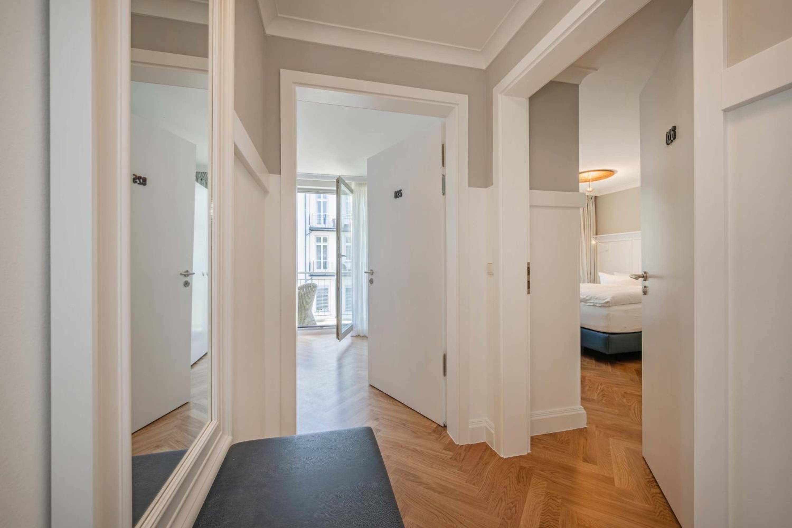 Experience comfort in spacious rooms and apartments with modern bathrooms at the Strandhotel Heringsdorf. Each accommodation option comes with a private balcony, perfect for enjoying the sea breeze.
