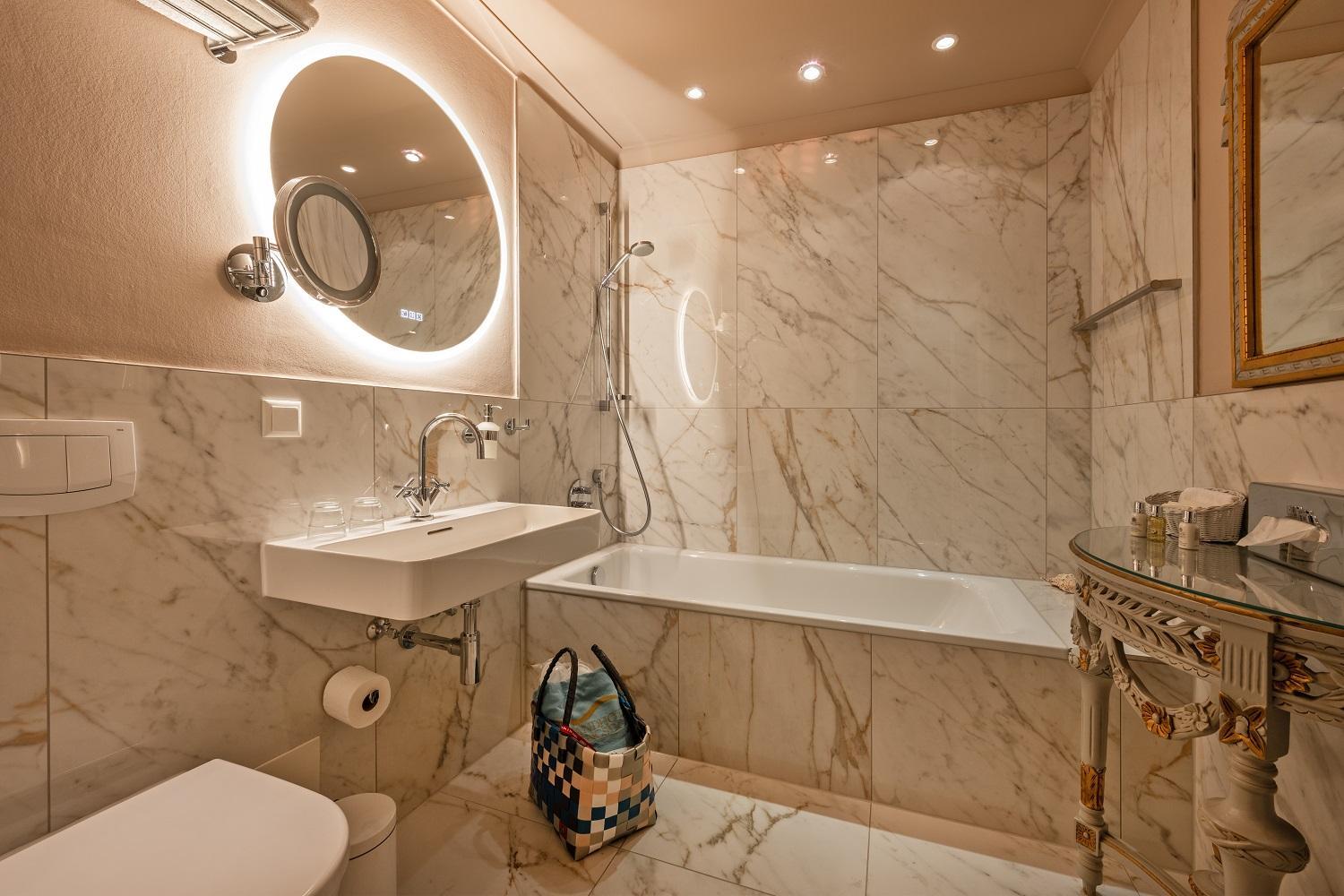 Das offene Bad im Zimmer.