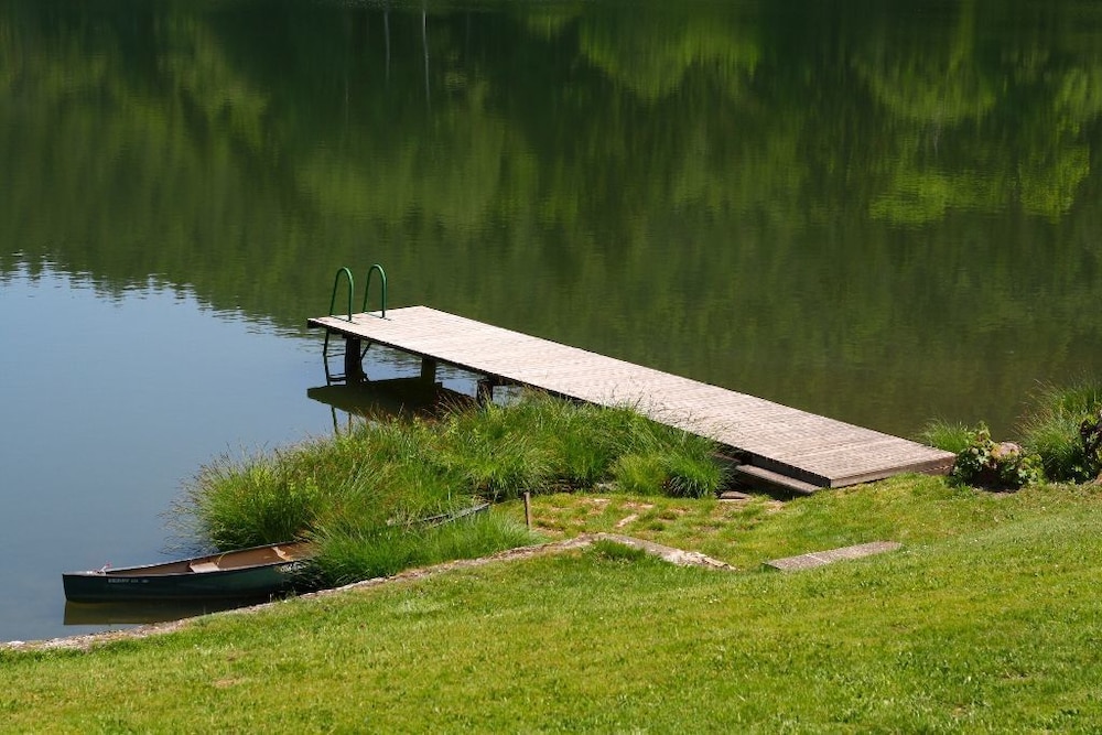 Am nahe gelegenen Teich verfügt das Hotel über eine eigene Liegewiese und ein Strandhaus. Es ist wunderschön dort.