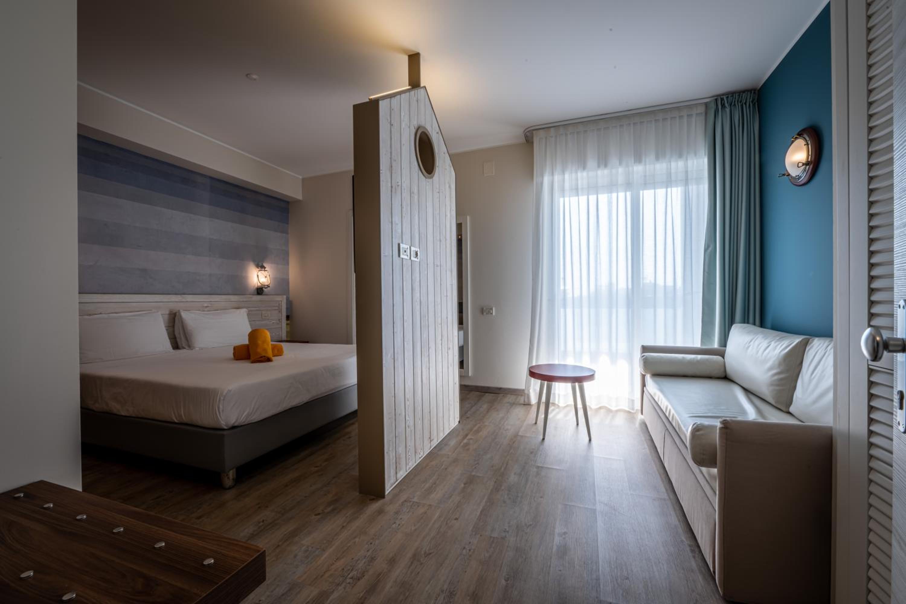 Kényelmes,tiszta szoba, szép kilátással. Programok gyerekeknek. A hotel saját medencéje kellemes. 2 perc sétára a parttól, ahol saját nyugágy, napernyő. Reggelinél széles választék,finom kávé.