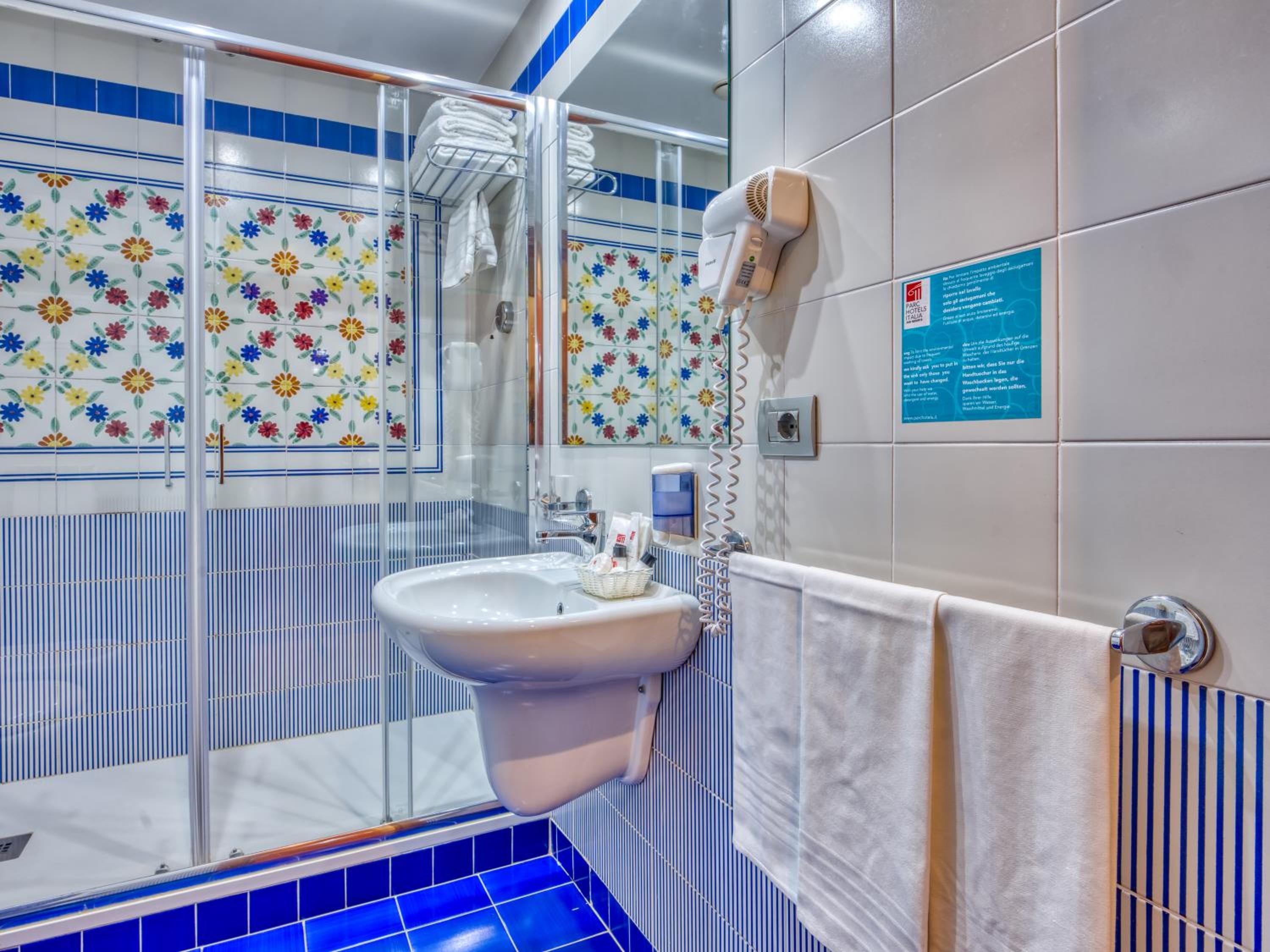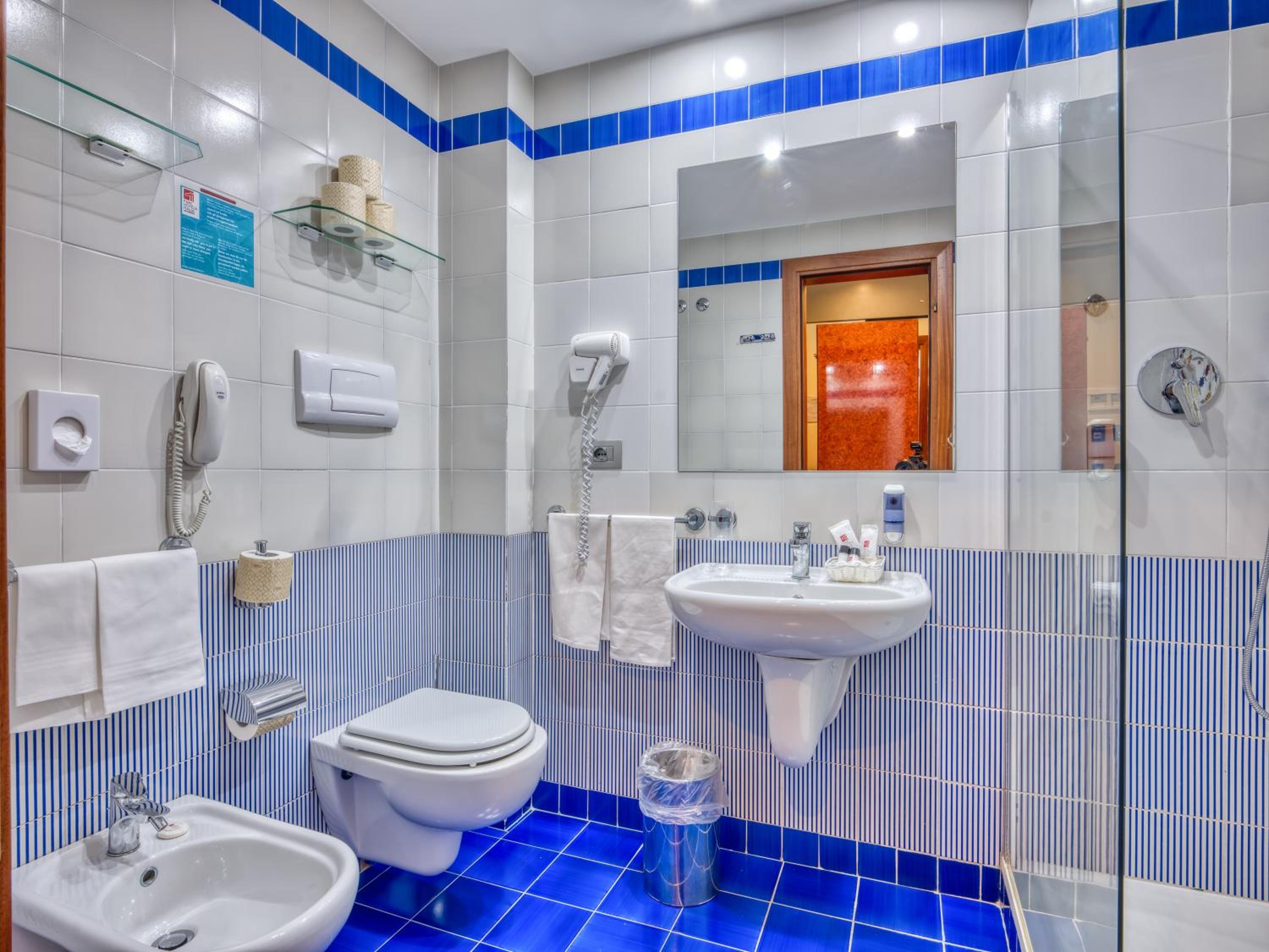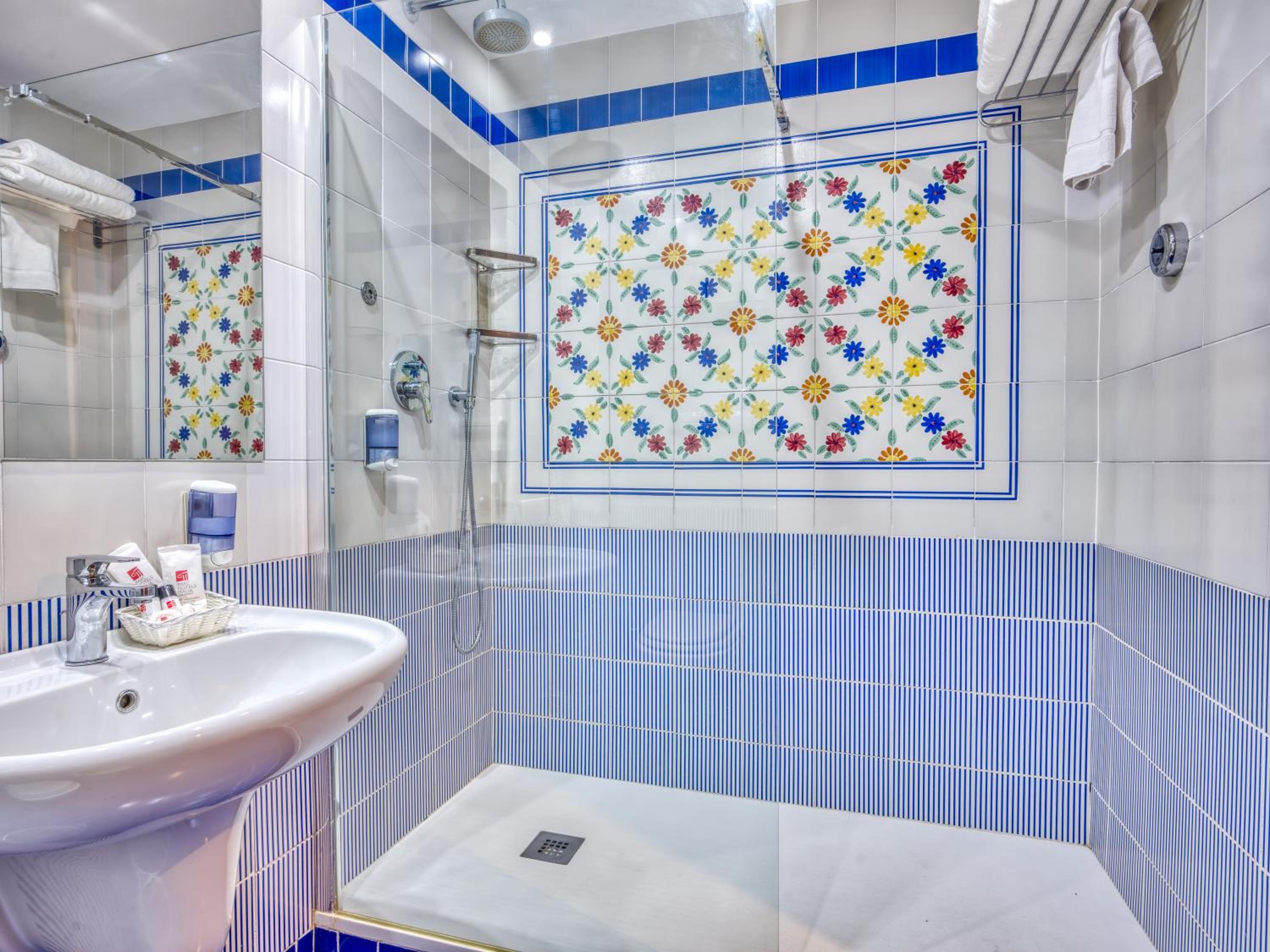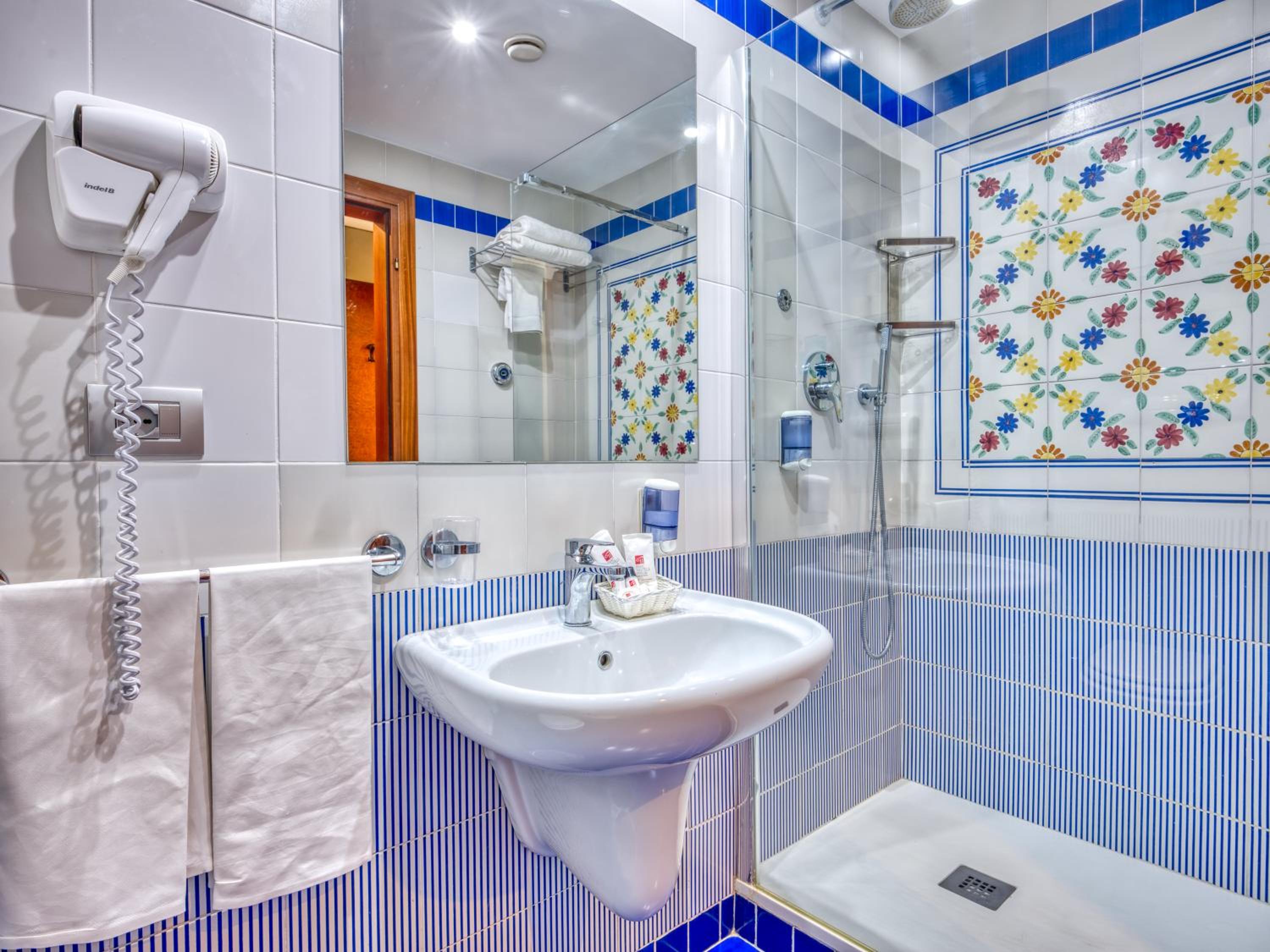 We booked at the last minute, and we had a lovely room with a huge balcony patio shared and divided with another room. There was an amazing amount of storage, both drawers and hanging space for two people. We had a bathtub too. The shower pressure was very good as was the hot water. We stayed here as some friends were staying here. The food was OK for a couple of days. It is run by a chain, and so there is a certain standard that is very acceptable to travelers from USA.