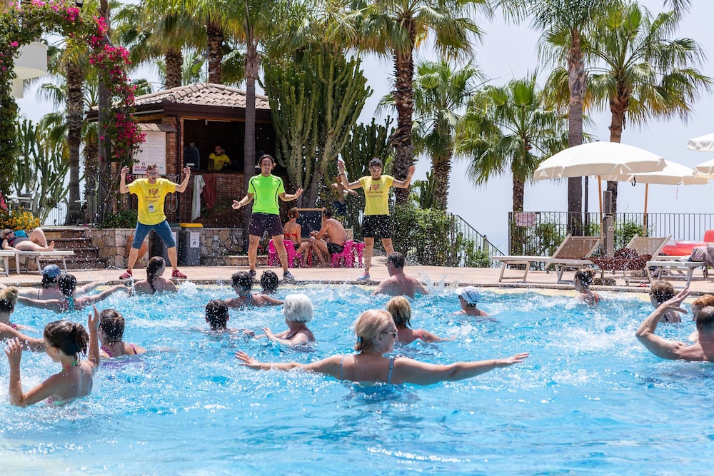 Bellissimo hotel con veduta mozzafiato sulla baia di Letojanni e Taormina, personale professionale e gentile, ottimo ristorante con cena a buffet, piscina e vasche idromassaggio disponibili, con un ascensore esterno su binario e un altro ascensore si arriva al livello della strada, ottima soluzione per le esigenze degli ospiti.