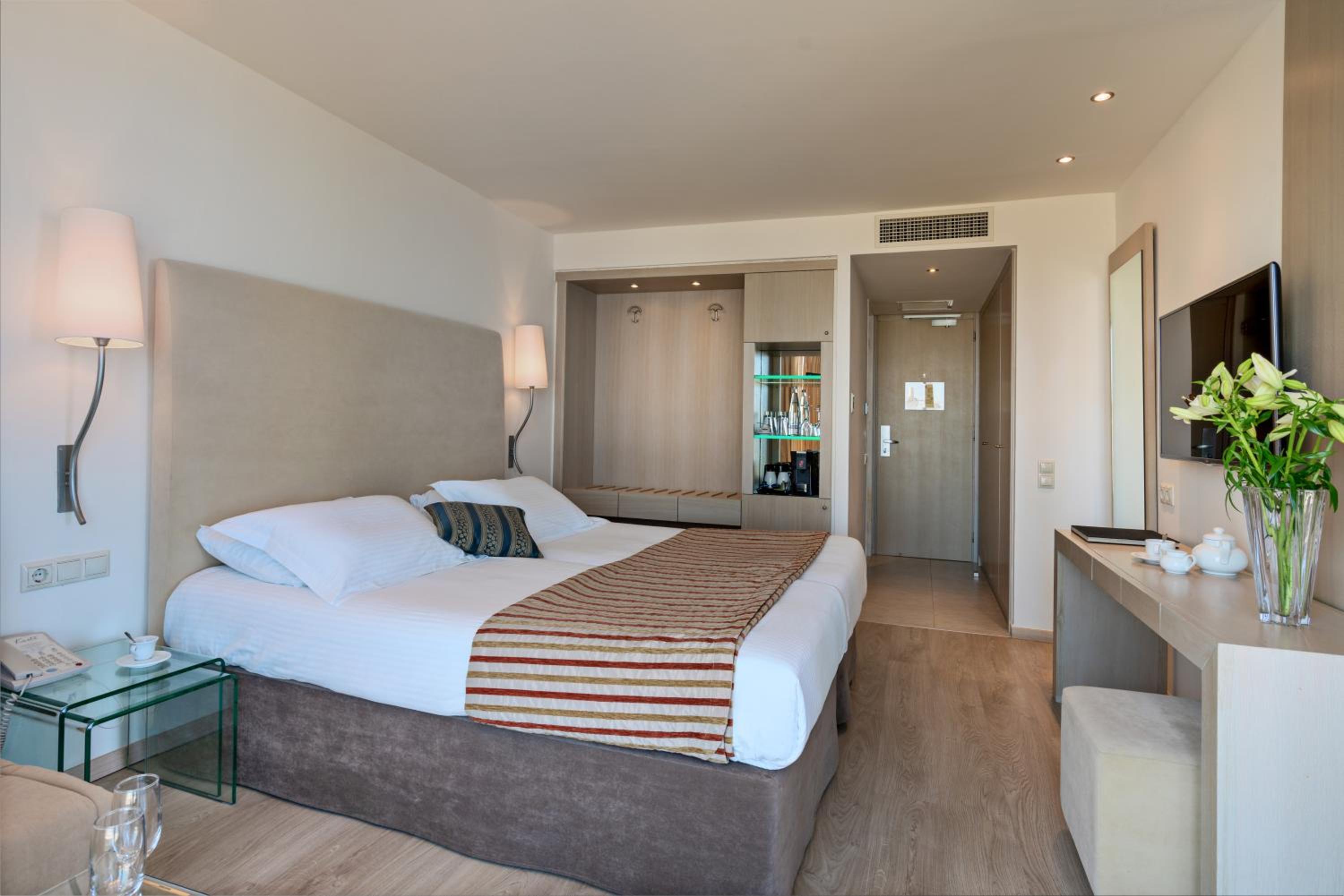 Experience the ultimate seaside getaway at Kriti Beach Hotel, ideally situated by the Blue Flag beach of Rethymnon. Enjoy stunning sea or mountain views from your private balcony in each elegantly decorated room.