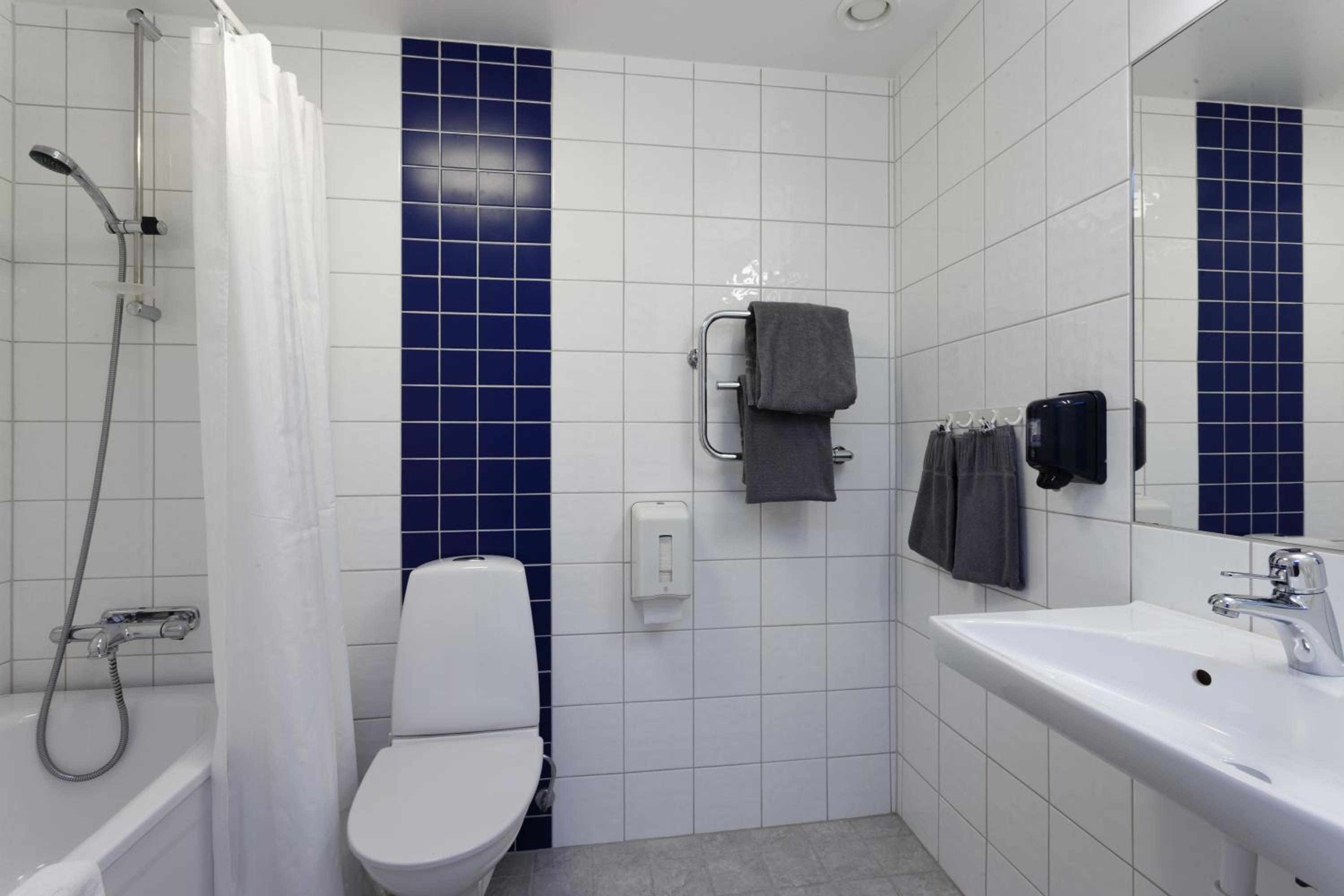 We loved this hotel. The rooms were big enough, the beds were comfortable, the sheets were clean and the bathroom was ok. The room was warm most of the time, just a bit cold in the morning. The bathroom didn't have things like shower gel or shampoo, but that wasn't a problem for us. But keep in mind you have to bring your own. Our room had a smart TV. The breakfast was great. There is free coffee and tea throughout the day in the lobby. We tried the waffle buffet (you make your own waffles so they are fresh) and we really liked it. There is also a private sauna you can book for free for 1 hour. It is nice that you are the only people using the sauna at a time. The sauna was great. There is also a shower there but again, bring your own shower gel. You have towels inside tho. Overall the hotel was a wonderful experience for this price.