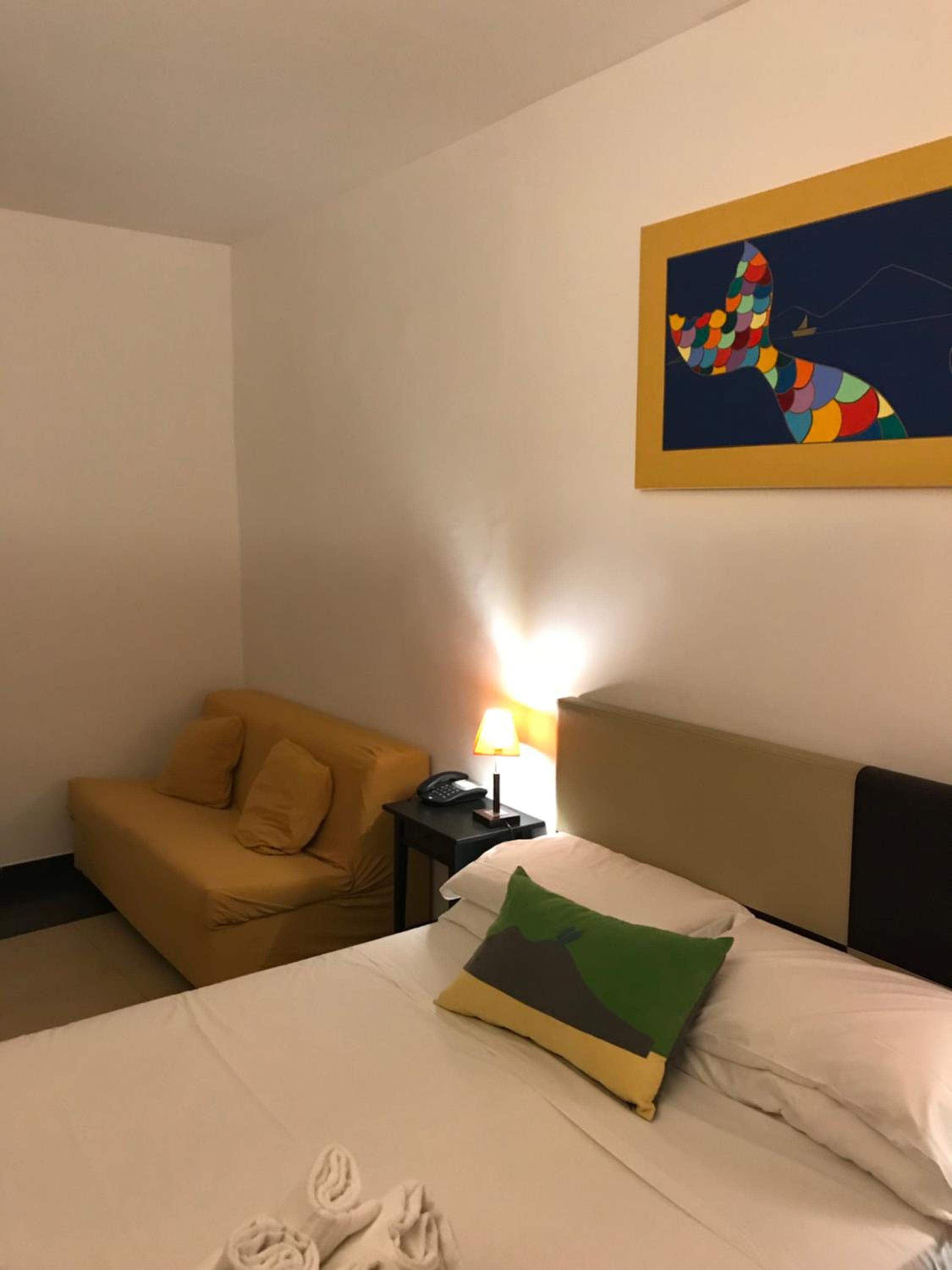 La stanza che ho prenotato era un po troppo piccola, senza un tavolino su cui poggiare cose, adatta a soggiorni brevi.