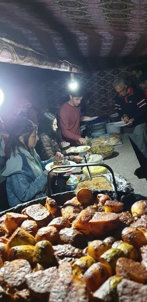 Staying in the camp was a great experience. The hosts were able to satisfy all the needs I had regarding desert trips. Everyone in the camp was very friendly and helpful. Food served both in the camp as well as during the trips was delicious and there was tea served everywhere with no limits :)
