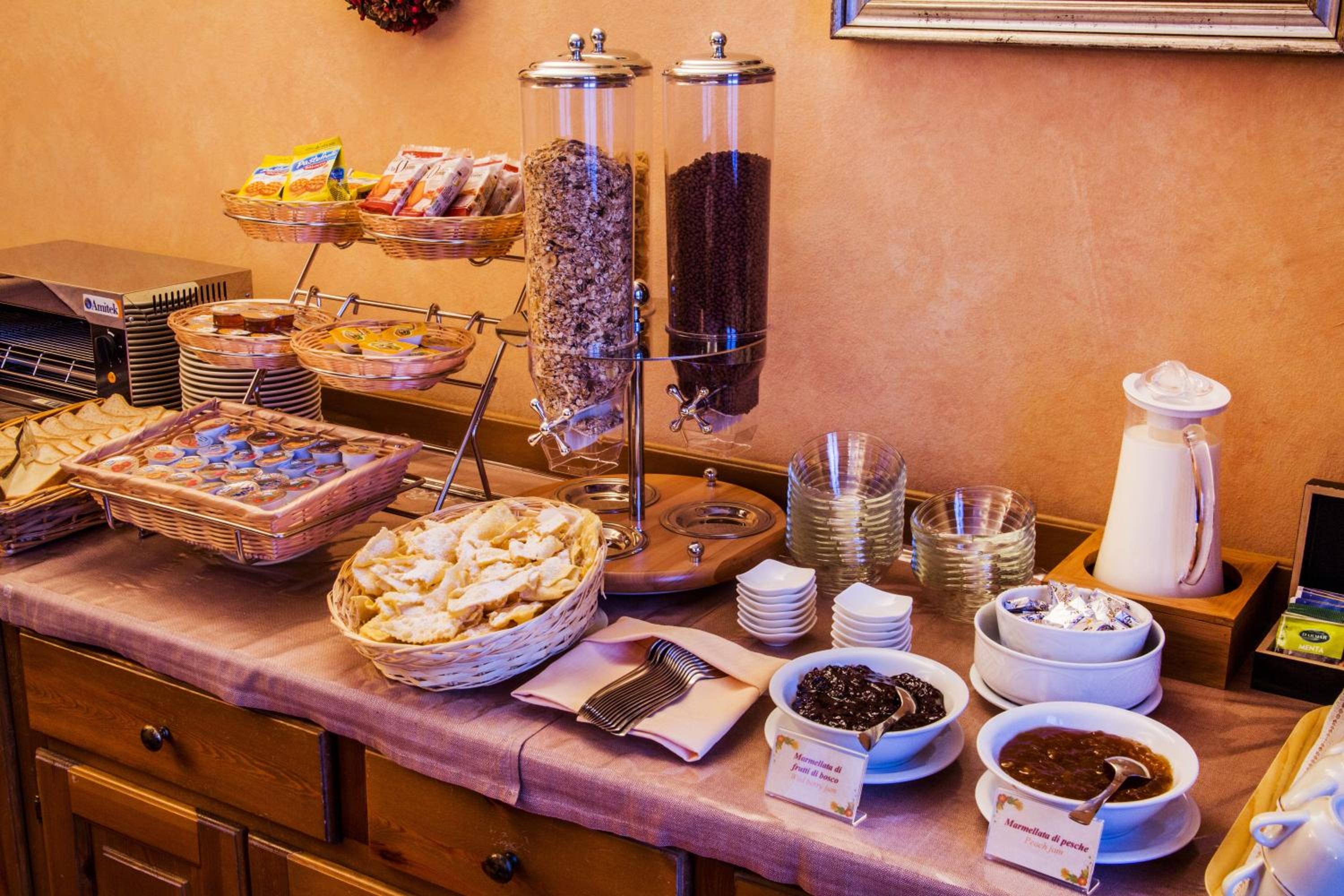 Indulge in a delightful buffet breakfast featuring a variety of homemade cakes, while the on-site restaurant tempts guests with traditional Italian fare and Aosta Valley specialties. For a more intimate setting, unwind in the cosy tavern by the fireplace.