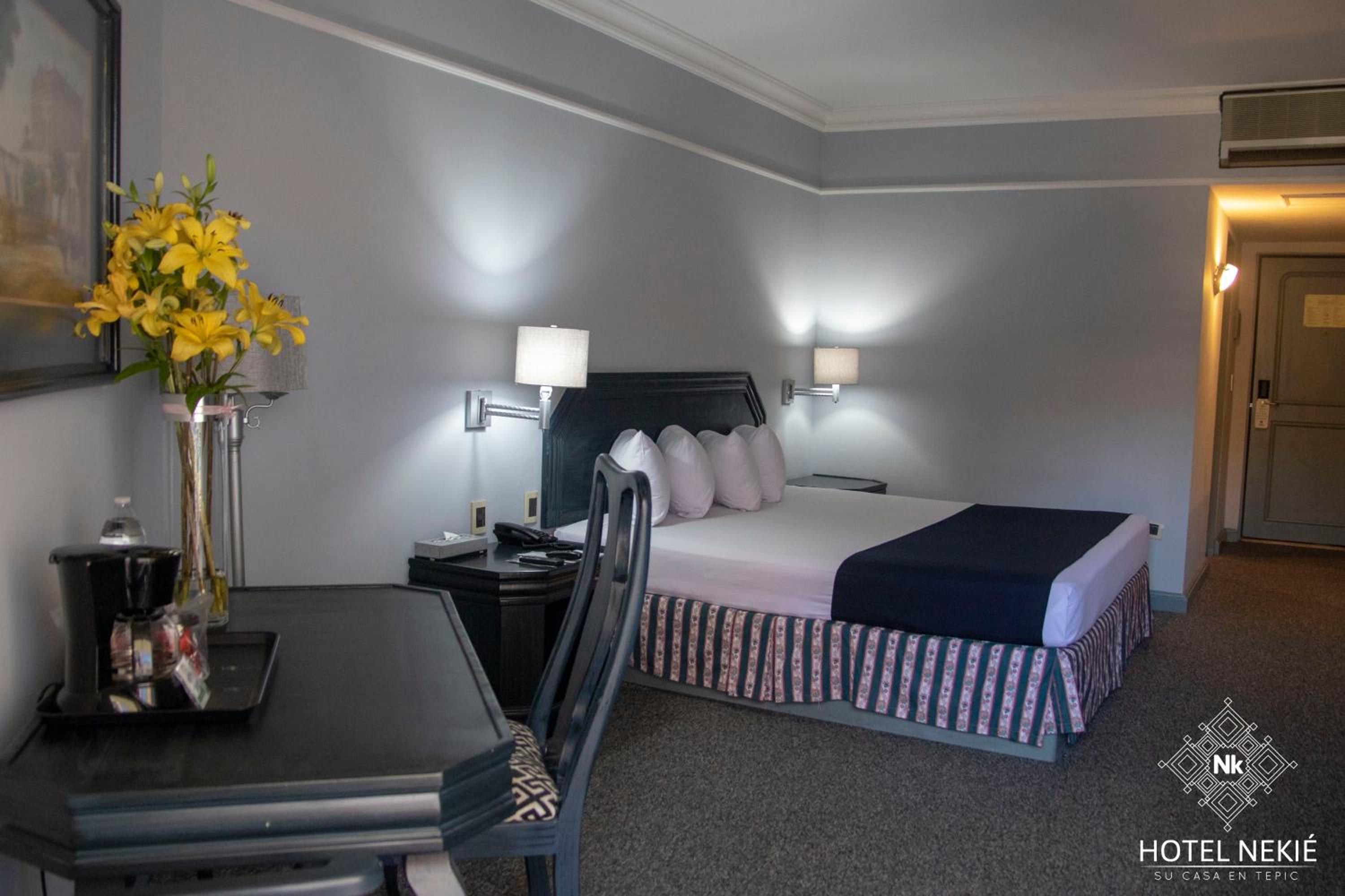 Nk Hotel Nekié Tepic offers a refreshing outdoor pool and comfortable air-conditioned rooms equipped with free Wi-Fi, TV, and private bathrooms, ensuring a relaxing stay for all guests.