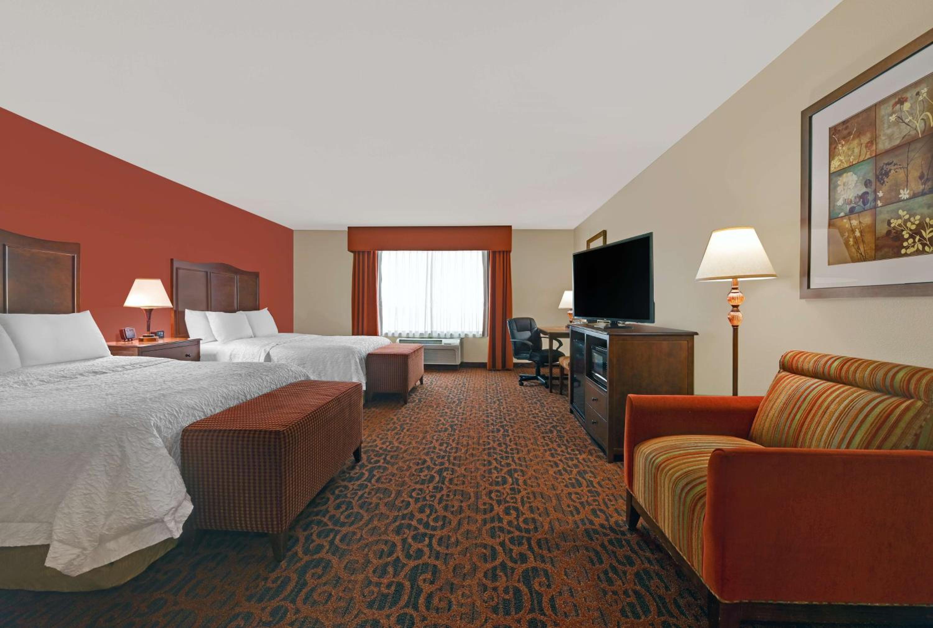 We're headed home and just passing through needed a simple place to spend the night, of course we can always count on the Hampton Inns. Room was very clean and quiet easy on and off ramp from the freeway customer service was excellent. Reasonably valued price and the noise level was extremely quiet got a good night's rest before a long drive home.