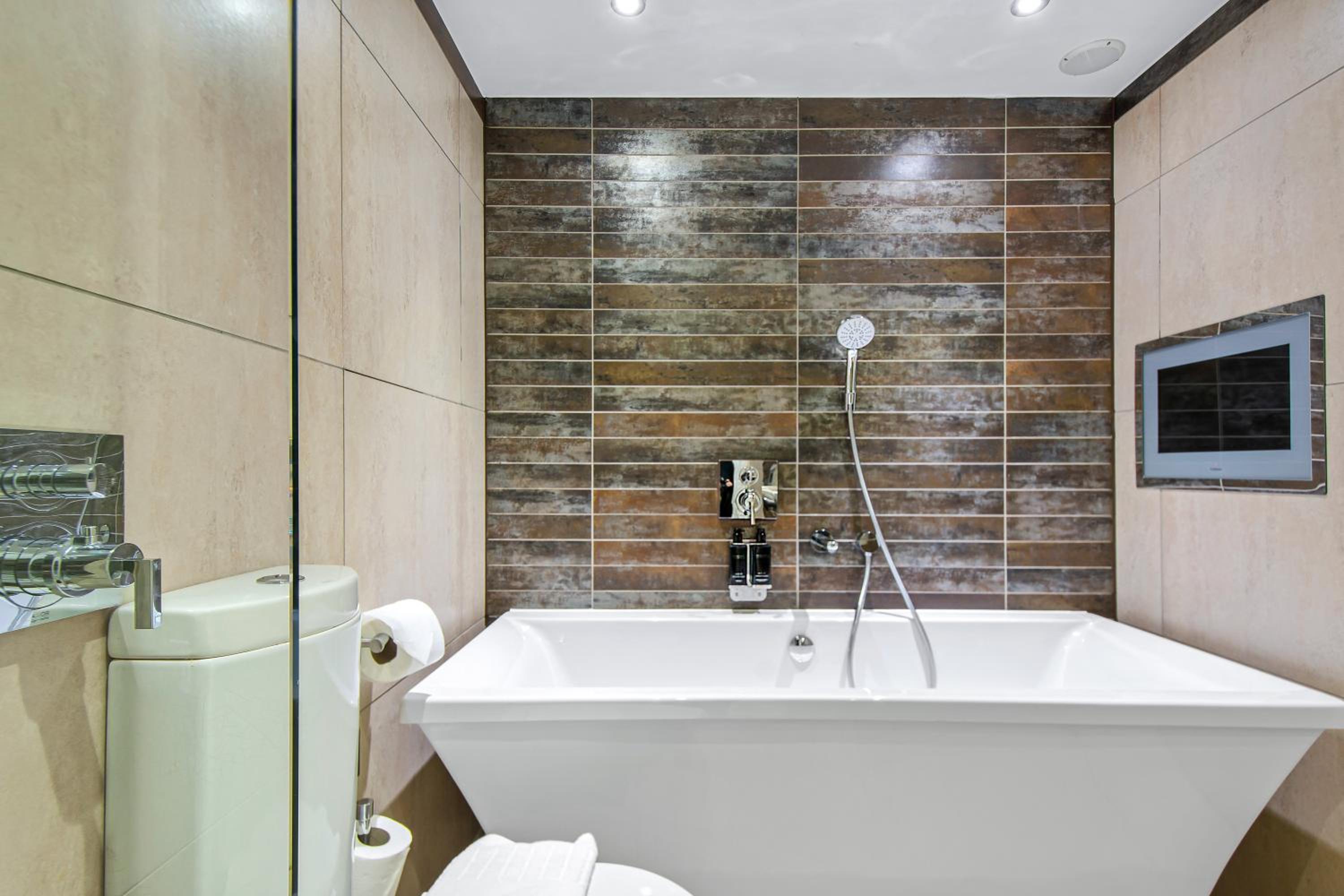 Stylish Accommodations: The air-conditioned apartments boast luxury beds, elegant bathrooms with rain showers and White Company toiletries, and modern living areas with flat-screen TVs and work desks.