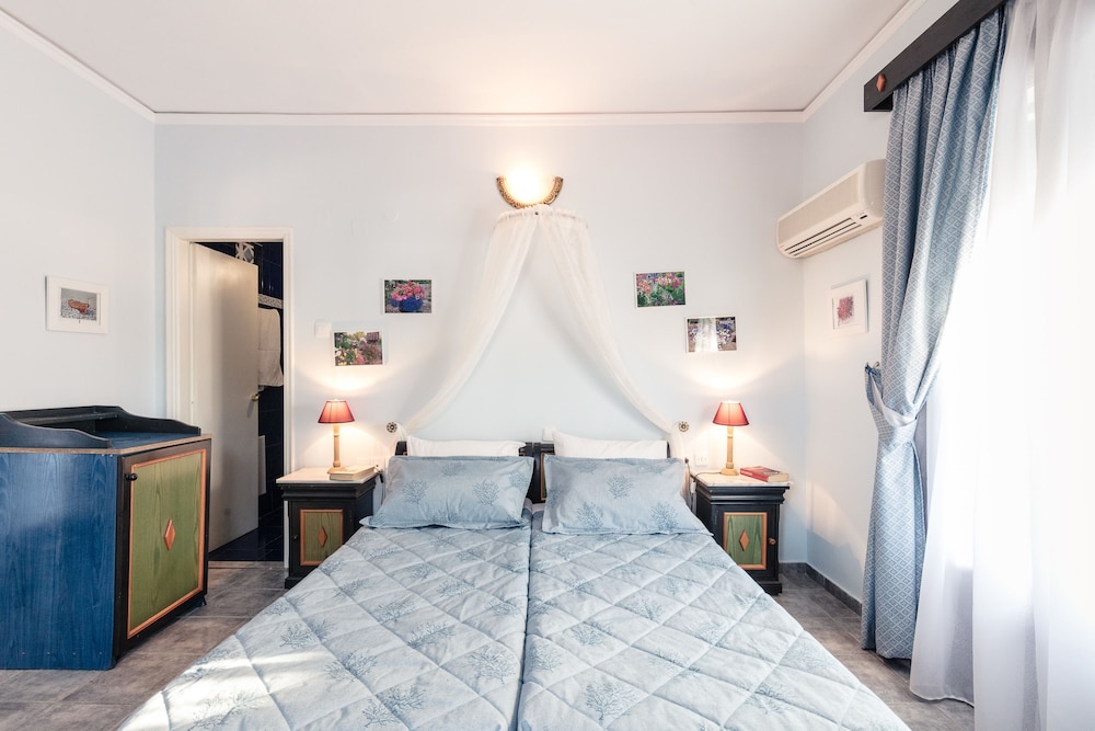 Hotellet ligger 5 min från färjeläget o 2 min från havet. Det finns en nyrenoverad del samt en original. Båda är trevliga o det är rent. Poolen är mysig med solstolar o parasoller. Personalen är bäst, de hjälper dig med allt.