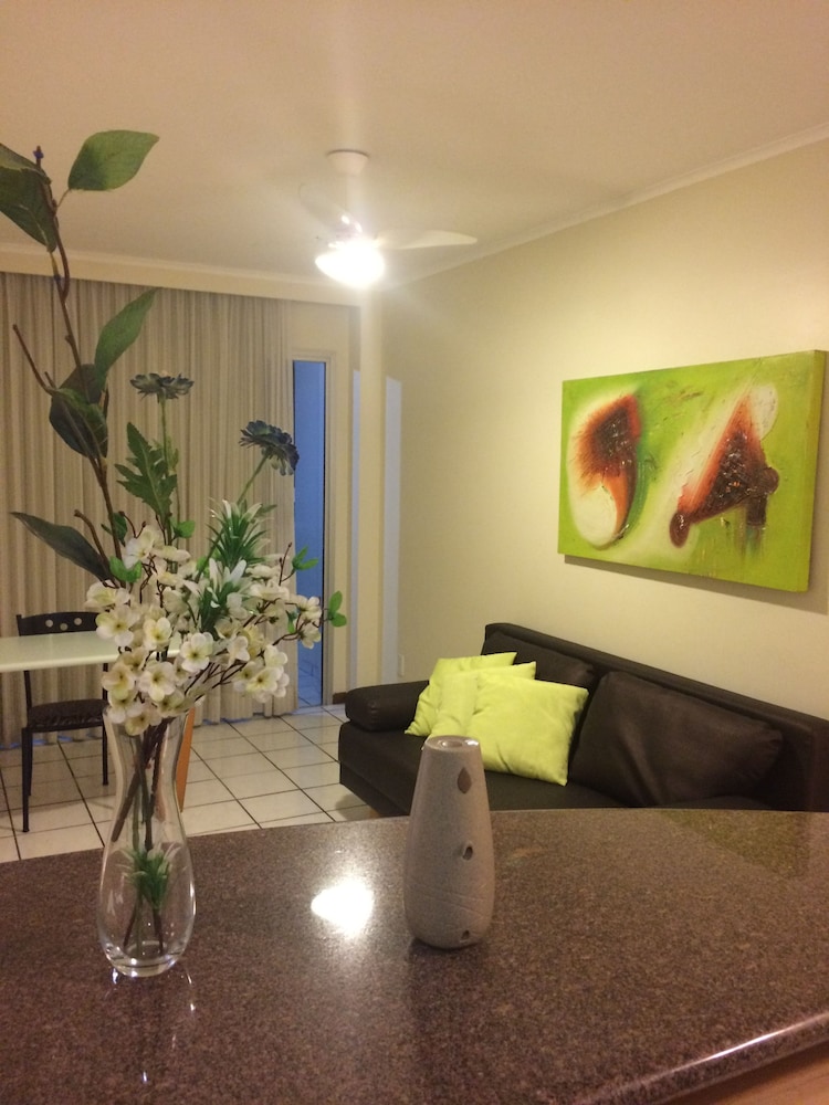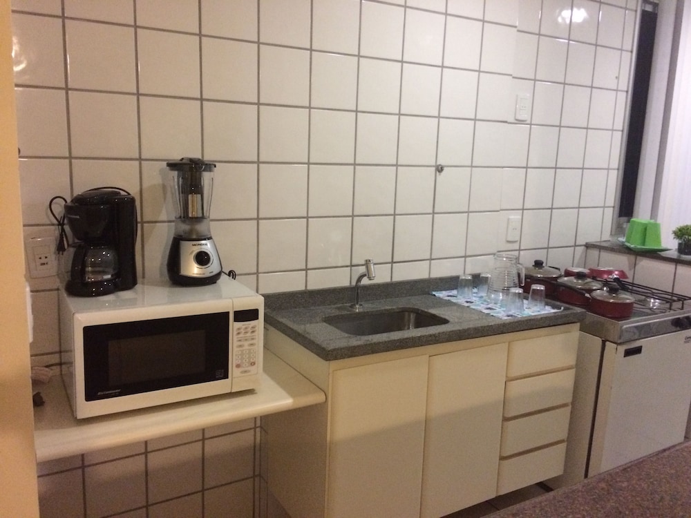 Ótima localização, perto de shoppings e da praia! Bom que no quarto já tem uma cozinha completa e lava-roupas pra quem for ficar mais dias pode usar.