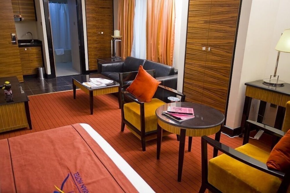 I currently live in a 5 Star hotel in KSA. The Rayan Cormiche was more luxurious. Thr room was very comfortable although on the small side and I was given two single beds. The staff ensured were helpful in putting them together. The hotel does not I have a restaurant, however, plenty of places to eat within a few seconds. I enjoyed the view of the Corniche from my hotel window which was amazing. The surrounding area was fantastic with lots of things to do and visit. The hotel was located in a good area, I managed to walk to the main bus terminal going to Dubai. Overall staff were very polite and helpful although one member of staff got my bill incorrect on a number of occassions!!