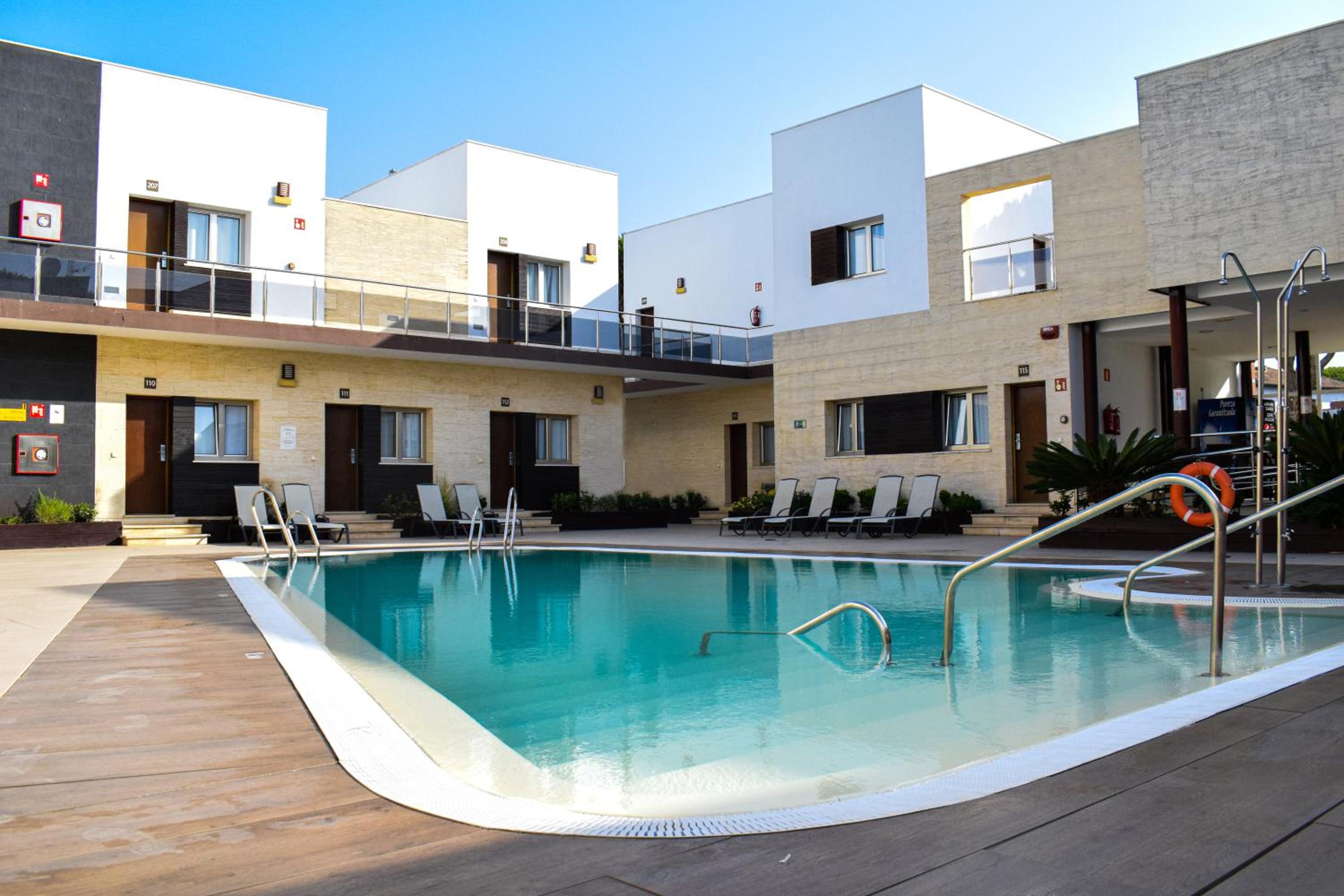 Escape to Aparthotel Novo Sancti Petri, a stylish retreat just steps away from Barrosa Beach. Luxurious Apartments await you, boasting modern amenities like flat-screen TVs and free Wi-Fi. Dine in Style at our restaurant offering traditional Spanish cuisine on a charming terrace. Convenience at Your Fingertips with nearby shops, restaurants, and golf courses. Book now for an unforgettable seaside getaway!