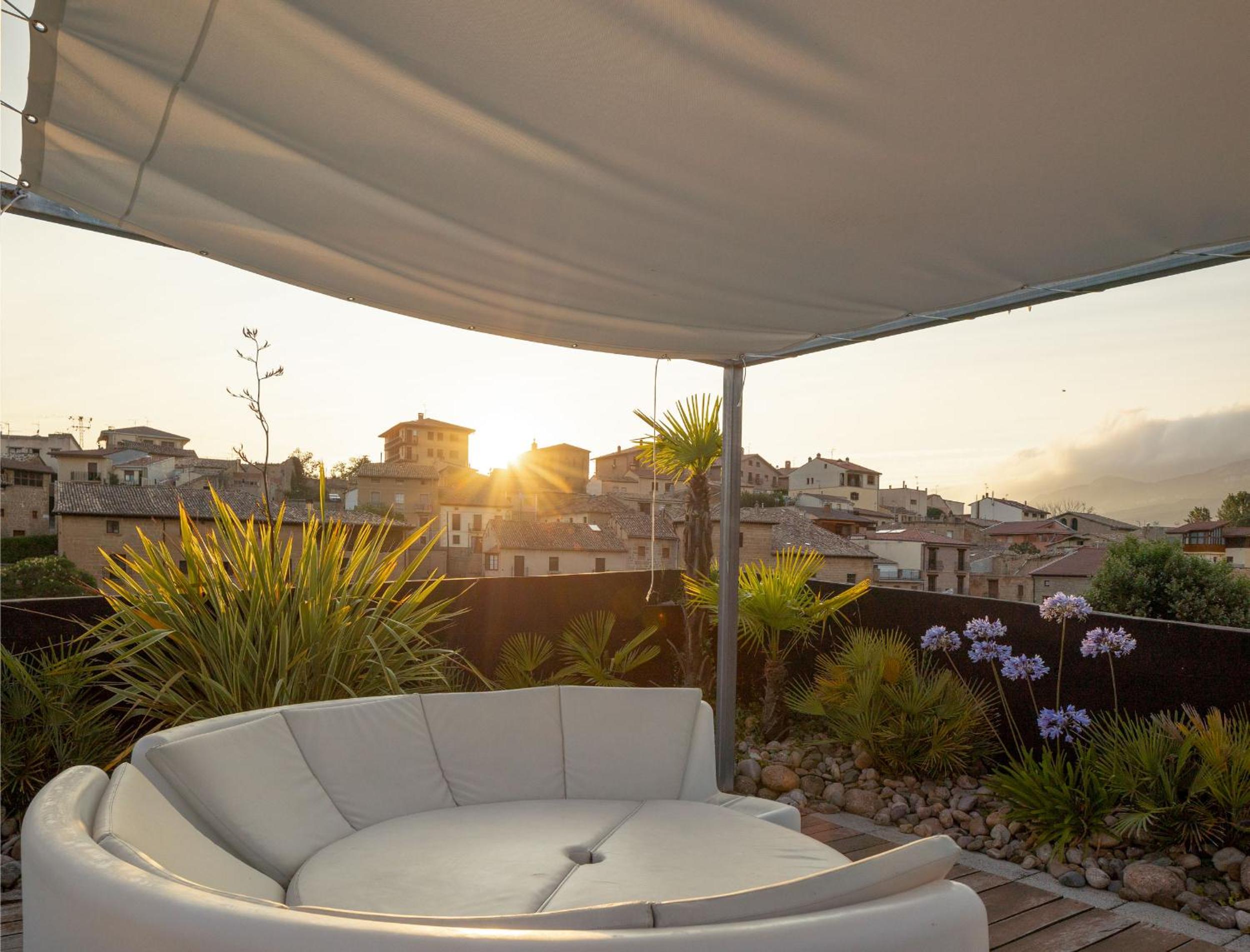 Indulge in the beauty of Sierra de la Cantabria Mountains from our rooftop terrace while sipping on fine wines.