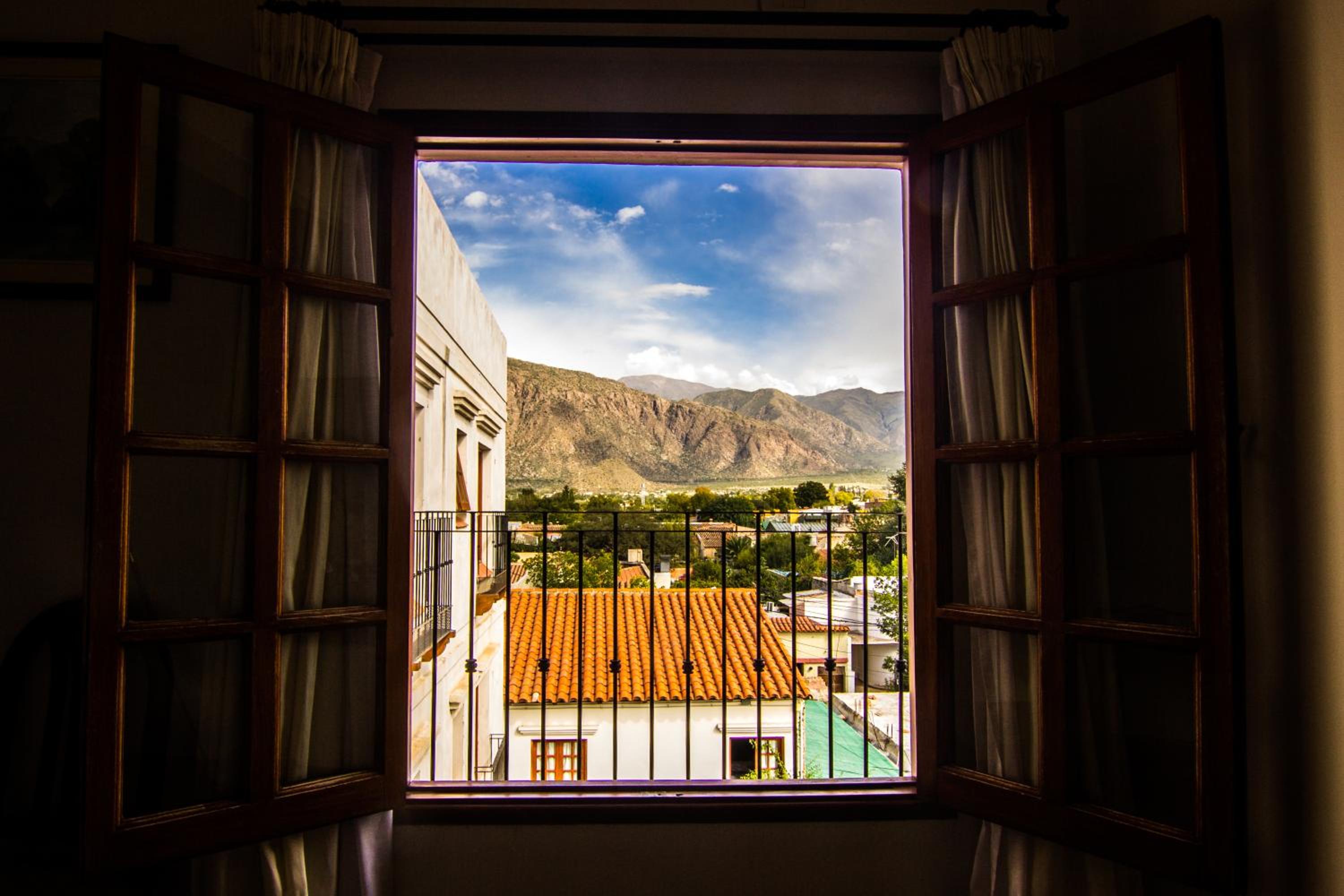 Ubicación inmejorable , cuenta con estacionamiento y es un hotel estilo colonial muy bello con un jardín con pileta precioso . Los cuartos amplios y con linda vista a las montañas .