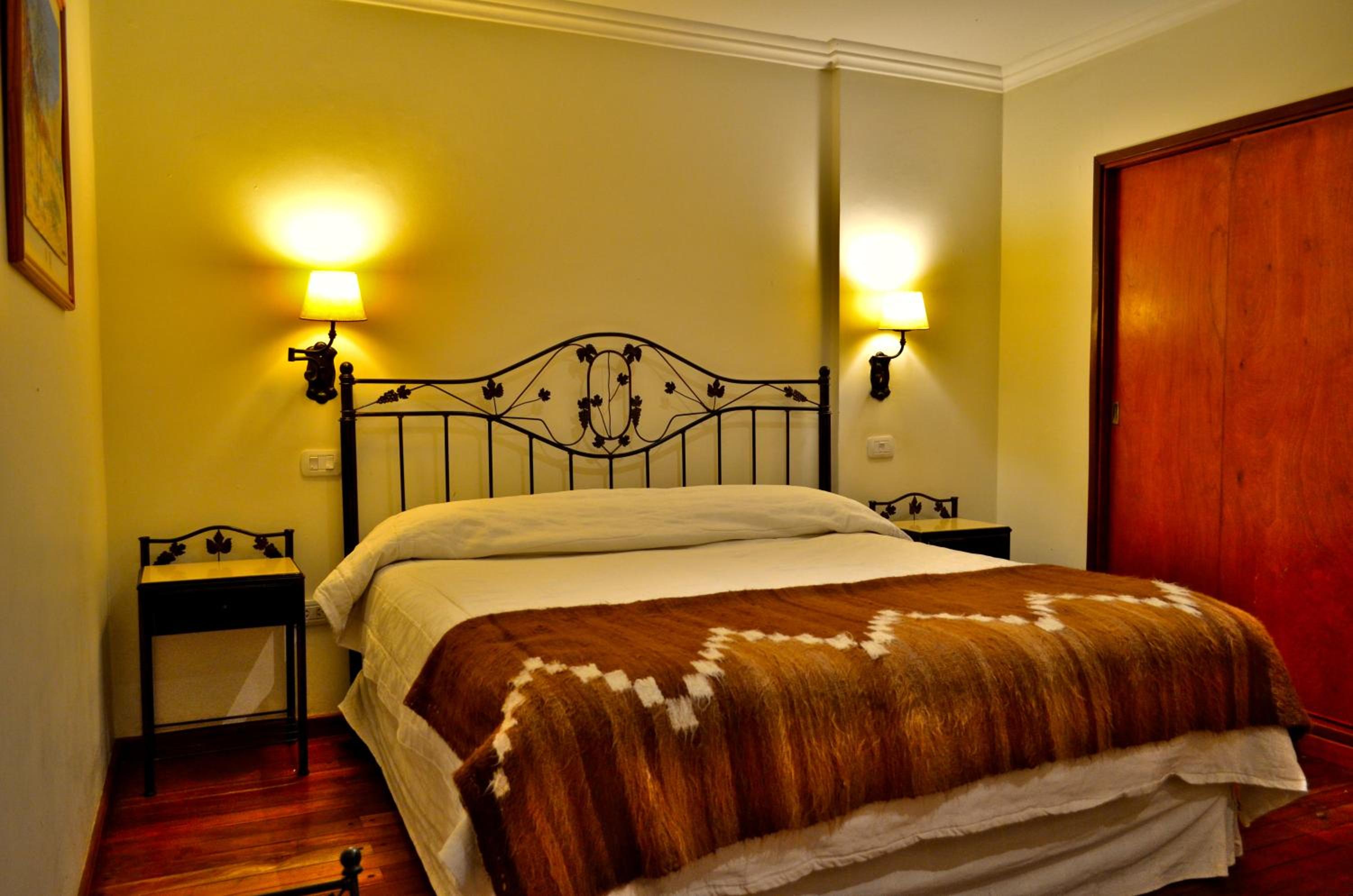 The spacious rooms at Asturias boast tasteful wooden floors, elegant queen-size beds with llama wool blankets, cable TV, and showroom hand-woven carpets, providing a cozy and authentic stay experience.