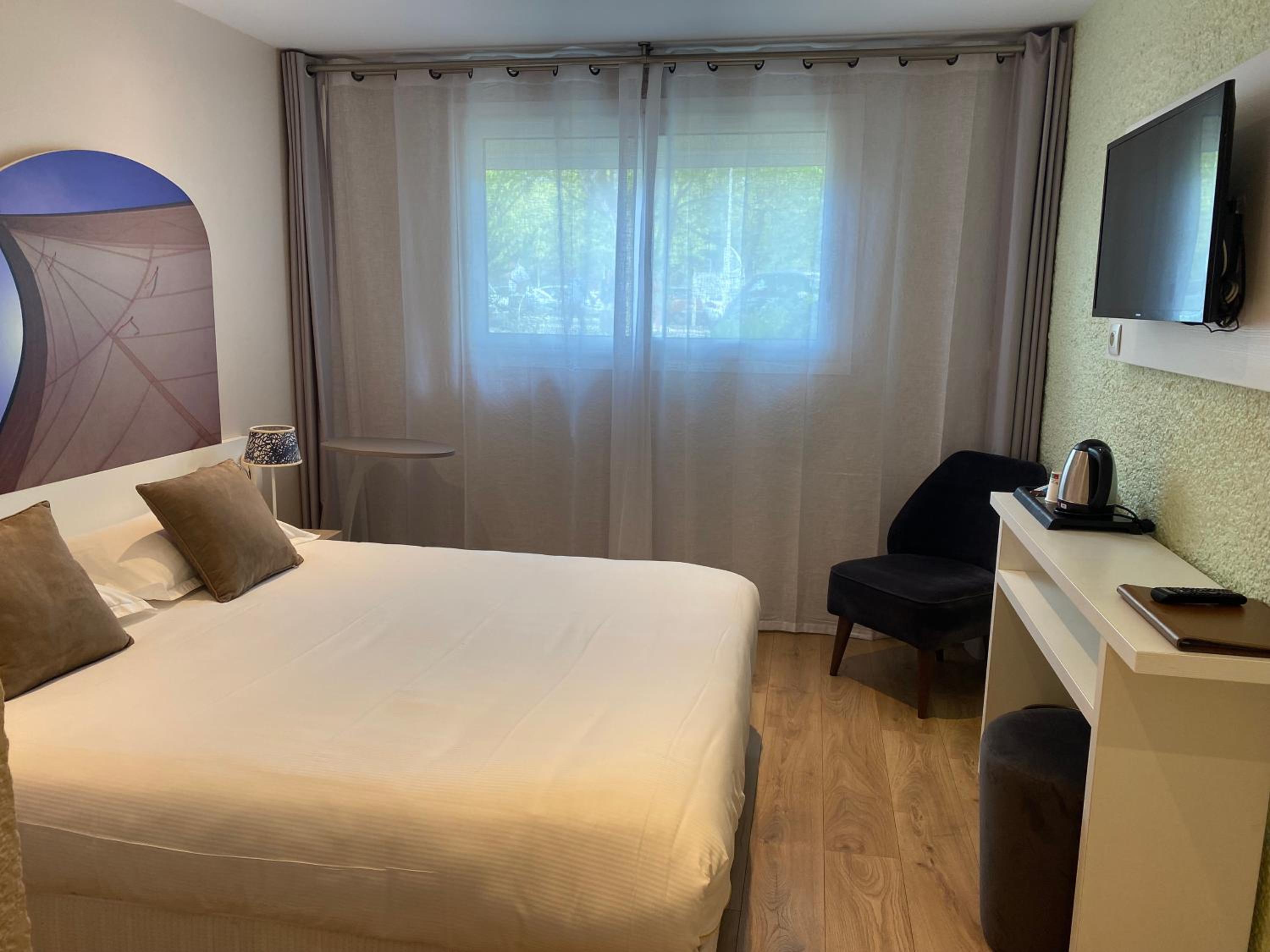 Le test très agréable, à quelques pas des monument, très bien si tu es avec son parking devant et derrière l'hôtel, à l'arrivée l'hôtesse nous a dirigé dans notre chambre. Toute mignonne très bien décoré. Ce qu'il faut pour pouvoir passer une nuit et se reposer. Malheureusement nous n'avons pas pu en profiter car c'était en période hors saison de la piscine. Des jeux une salle de jeux avec beaucoup d'activités à faire. Une literie et une hygiène nickel.. pour le prix en hors saison rien à dire pour moi c'est le meilleur hôtel.