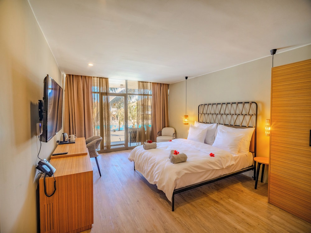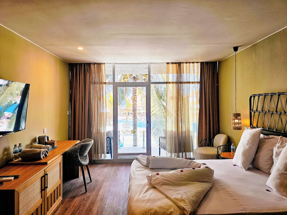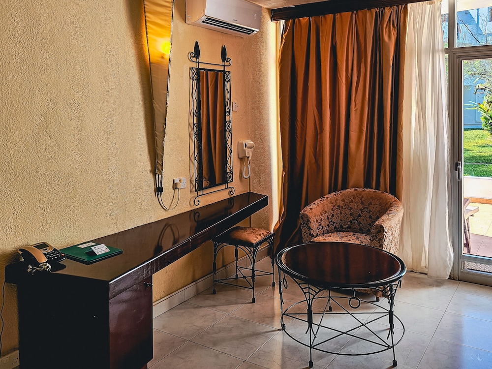 Quite a tired place with good need of some TLC, particularly in the rooms. Staff were generally friendly, but I was a bit put out when they repeatedly tried to charge me double for my airport transfer. The WiFi is not free, and you're better off buying a SIM card and using that as a hotspot. Similiarly, no bottled water is provided and must be paid for separately, or just bought from one of the shops outside the hotel entrance. Taxis out the front attempt to charge extortionate rates, but can be bargained down easily enough, but that's to be expected. Otherwise, the situation is nice (on the beach), and the pool area comfortable for sitting.