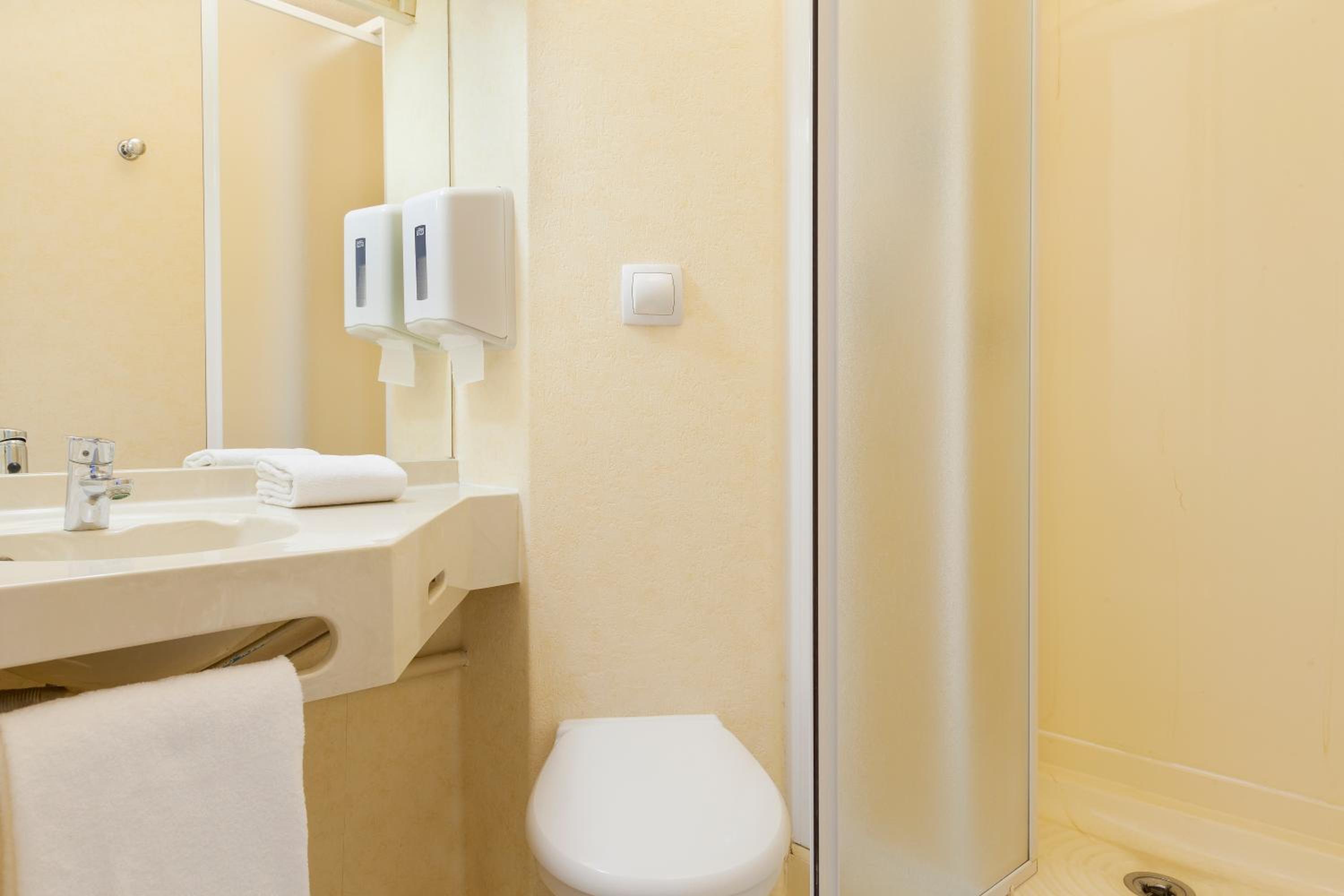 This is OK for a stop off - family room was decent size with 5 full beds but bathroom was small. No real restaurant or facilities - not that close to motorway or Arras either. There are McDonalds and supermarkets/petrol close by. We had an issue with the toilet leaking which the hotel resolved - staff were nice.