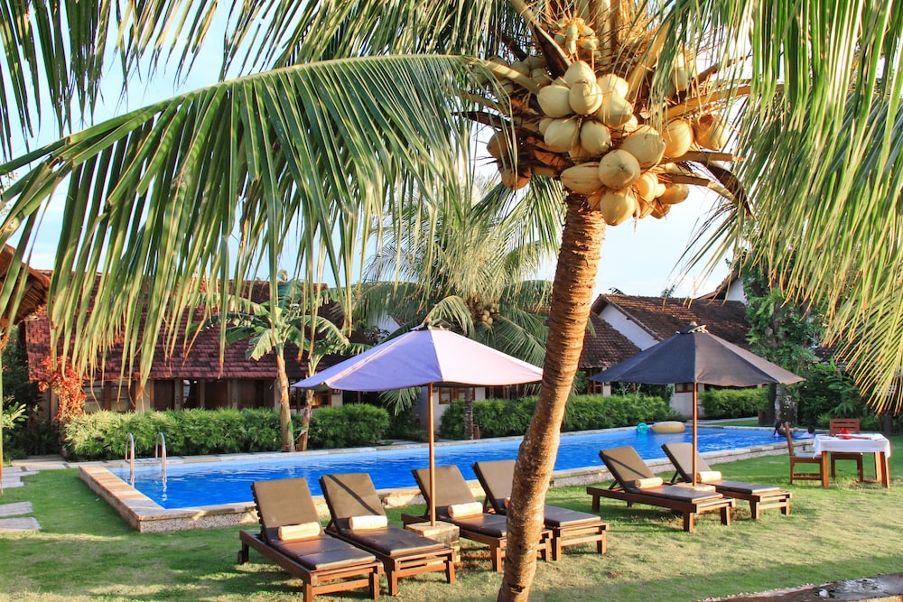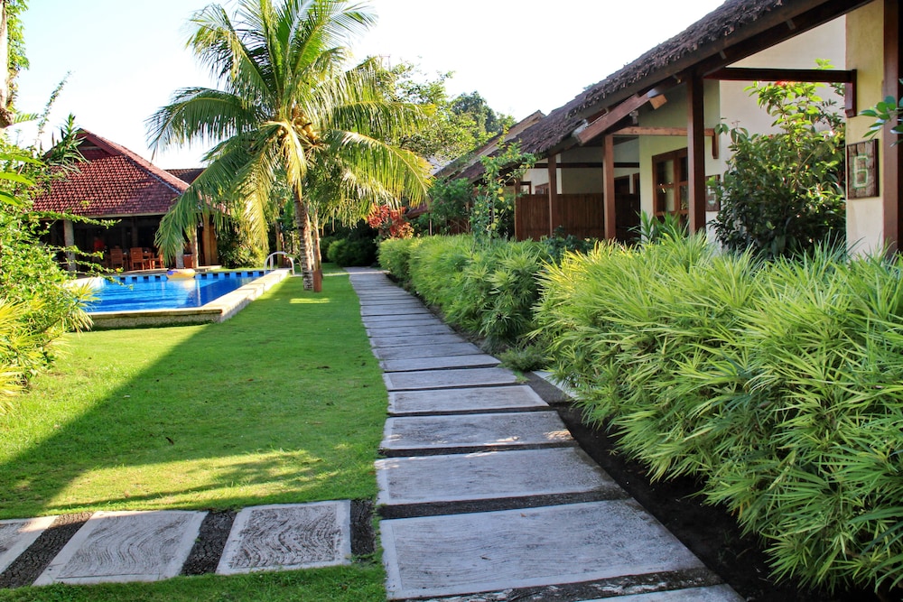 海に面したダイブ目的のリゾートホテルです。ホテルは村の中にあります。なのでホテルから出て食事、ショッピングを楽しむ場所ではありません。ビーチで賑やかに過ごすような雰囲気でもない。逆に静かなので海風と海の音を聴きながらリラックスした気分を得るには良いと思います。但し、時々近くのモスクからの音が聞こえてきます。綺麗なプールあります。スパもありました。重要なダイブですが、ダイブショップが併設されておりホテルから桟橋を約100m歩いた先の船着場からボートで出発。45分位でポイント到着します、Bunaken National Park。空港からホテルまで車で約30分と便利です。