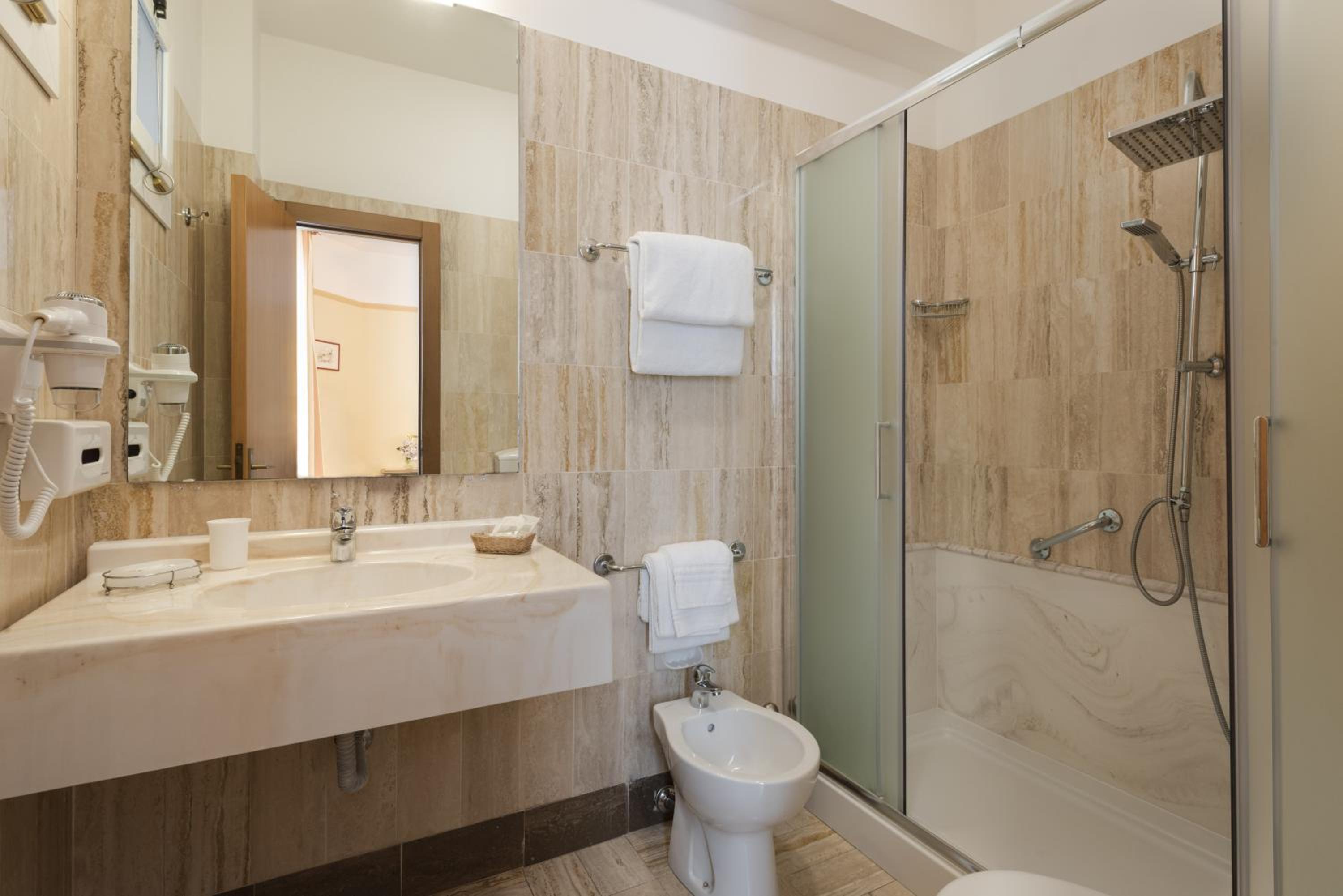 Colazione ottima con vasta scelta a buffet, cena altrettanto ottima. Camere confortevoli. Bella piscina. Posizione centrale ma soprattutto staff e proprietari gentilissimi